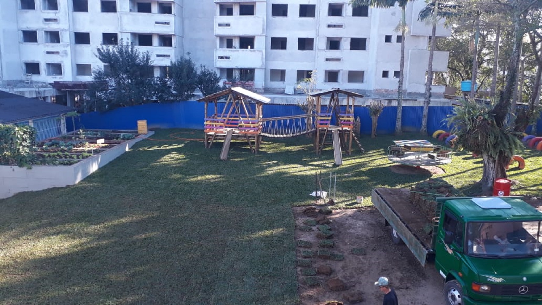 Em parceira com o Governo de Siderópolis e a Associação dos Pais e Professores (APP), a área de recreação do Centro de Educação Infantil (CEI) Criança Cidadã, no bairro Centro, está passando por revitalização. O local está recebendo gramado, brita, tablados de madeira embaixo dos balanços do parque, manutenção da horta e colocação de placas para embelezamento.