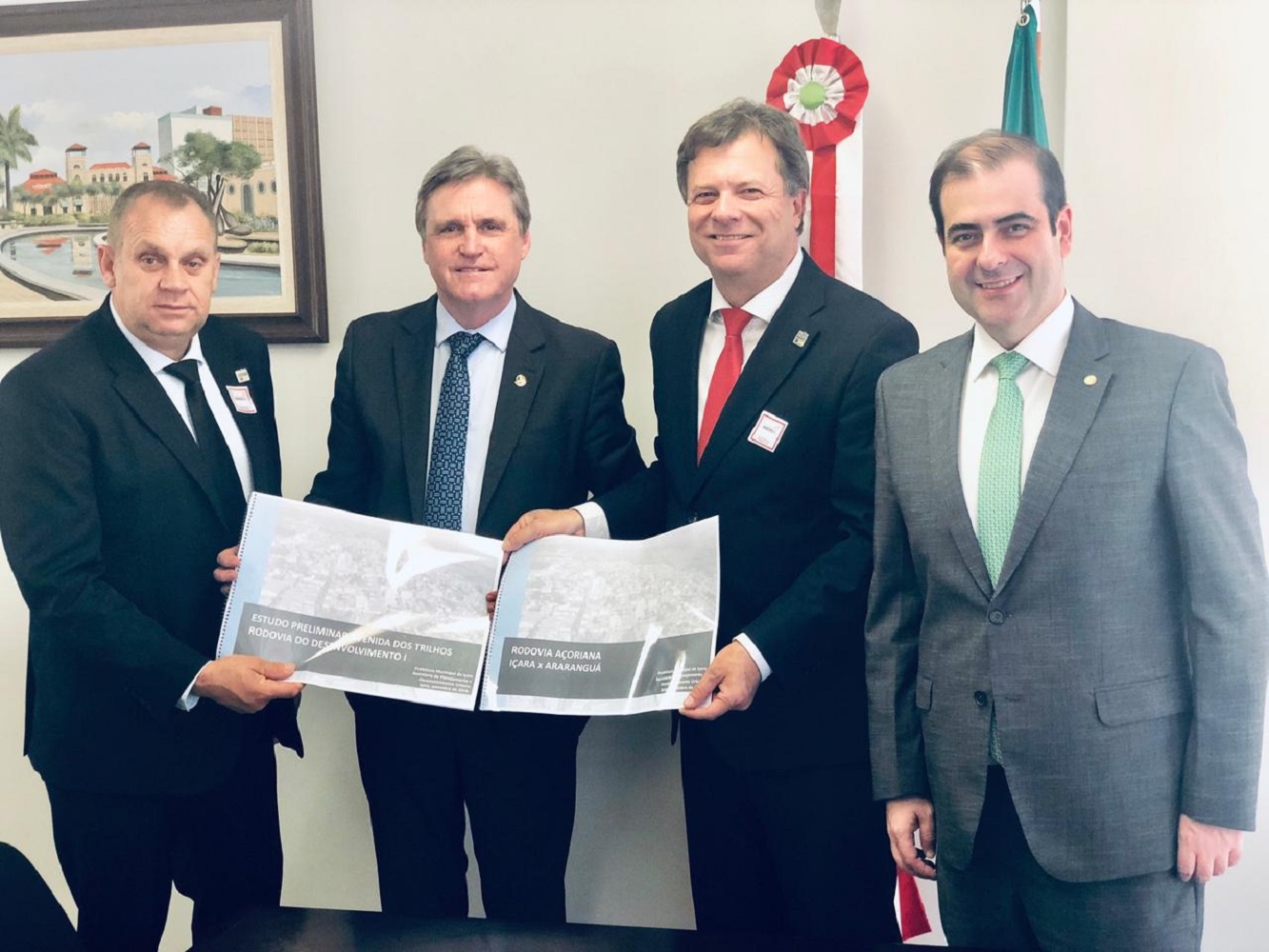 Cumprindo agenda em Brasília, o prefeito de Içara Murialdo Canto Gastaldon, acompanhado do diretor-presidente do Samae, Geraldo Baldissera, buscam recursos e mobilização para viabilizar duas importantes obras que colaborarão com a interiorização e desenvolvimento da cidade: o Acesso Norte ao Município e a Rodovia Interpraias. Eles estiveram no gabinete do senador Dario Berger e do deputado federal Ricardo Guidi.