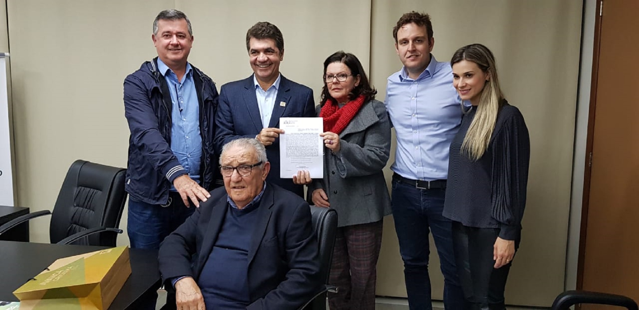 Na noite desta sexta-feira (20), o prefeito de Criciúma, Clésio Salvaro, recebeu, na Sala de Atos, a família do ex-prefeito de Criciúma, Altair Guidi. O objetivo do encontro foi para apresentar o projeto de lei do Poder Executivo (PE), que homenageia o político no nome do novo Parque Centenário, após a sua inauguração no dia 6 de janeiro de 2020. A homenagem será pela carreira marcante do político e também por ser responsável pela inauguração do espaço na década de 80. A denominação correta do local será definida ainda.