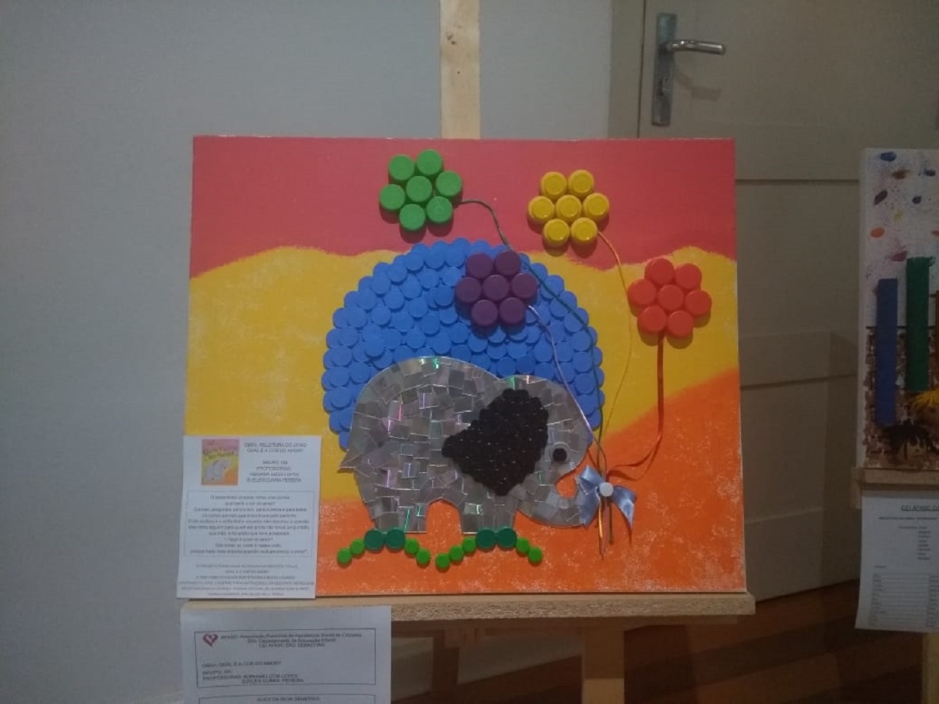 Na obra “Qual é a cor do amor”, baseada em um livro de mesmo nome, o C.E.I. Afasc do bairro São Sebastião, desenvolveu uma atividade dentro da sala de aula, que para as crianças envolvidas, serviu de complemento para o projeto. A ação foi acompanhada pelas pedagogas Suelen Cunha Pereira e Adriana Lúcia Lopes. “O Projeto Pipoca veio para complementar o trabalho feito em sala de aula. O quadro foi feito em várias partes, com grupinhos de crianças. Realizar a releitura do livro com um quadro, foi um desafio muito grande e trouxe momentos de união, cooperação e ajuda mútua”, conta a professora Suelen. “A arte na educação infantil estimula a sensibilidade, a criatividade, a imaginação e foi muito bom realizar essa atividade com as crianças”, enfatiza.