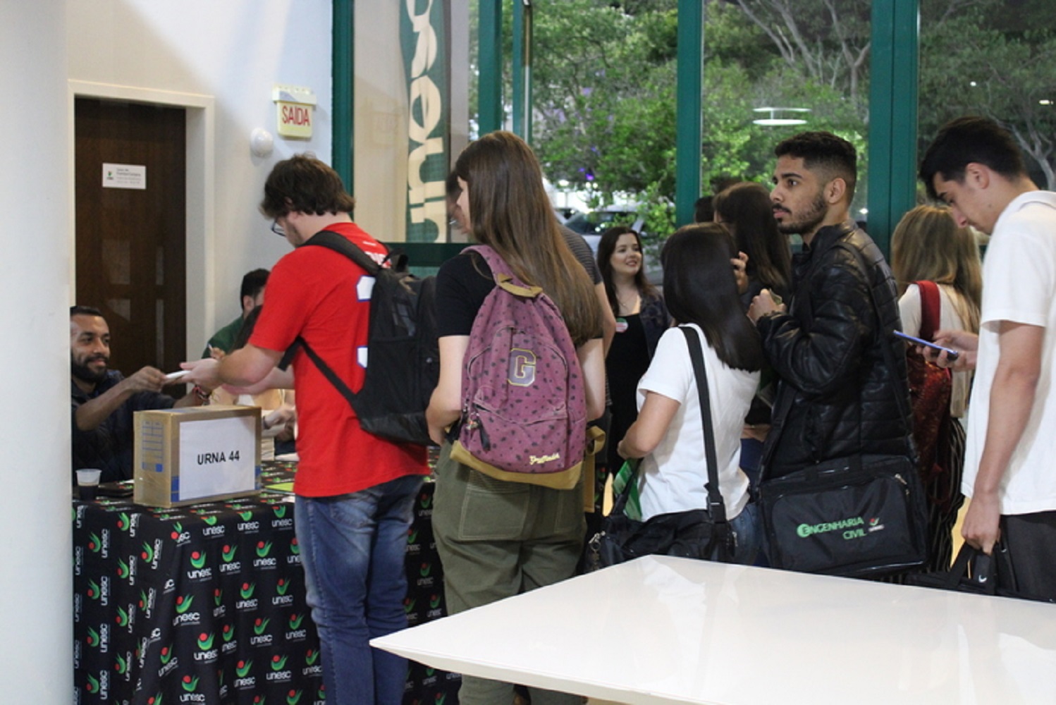 Os alunos da Universidade foram às urnas nesta terça-feira (12) para escolher seus novos representantes frente ao DCE (Diretório Central dos Estudantes). A apuração encerrou na madrugada desta quarta-feira (13) e o resultado foi de 872 votos para a Chapa 2, liderada pelo acadêmico de Engenharia Civil, Kelvin Benedet, e 370 para a Chapa 1, liderada pelo estudante dos cursos de História e Direito, Jhon Marcell Ansiliero Maciel.