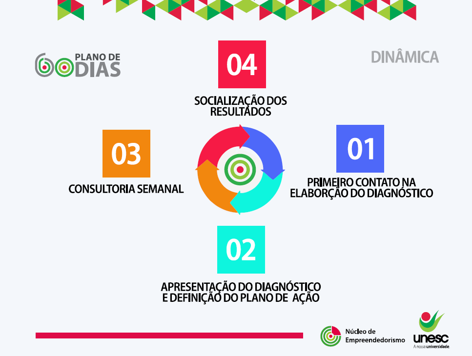 “Tudo se inicia com um diagnóstico do empreendimento. Depois o projeto é aperfeiçoado em um processo de importantes momentos para seu crescimento e fortalecimento, assim, definindo as ações a serem tomadas. Posteriormente, é realizado um acompanhamento da evolução da consultoria e, por fim, os empreendedores compartilham os conhecimentos e resultados obtidos durante o Plano de 60 Dias”, destaca