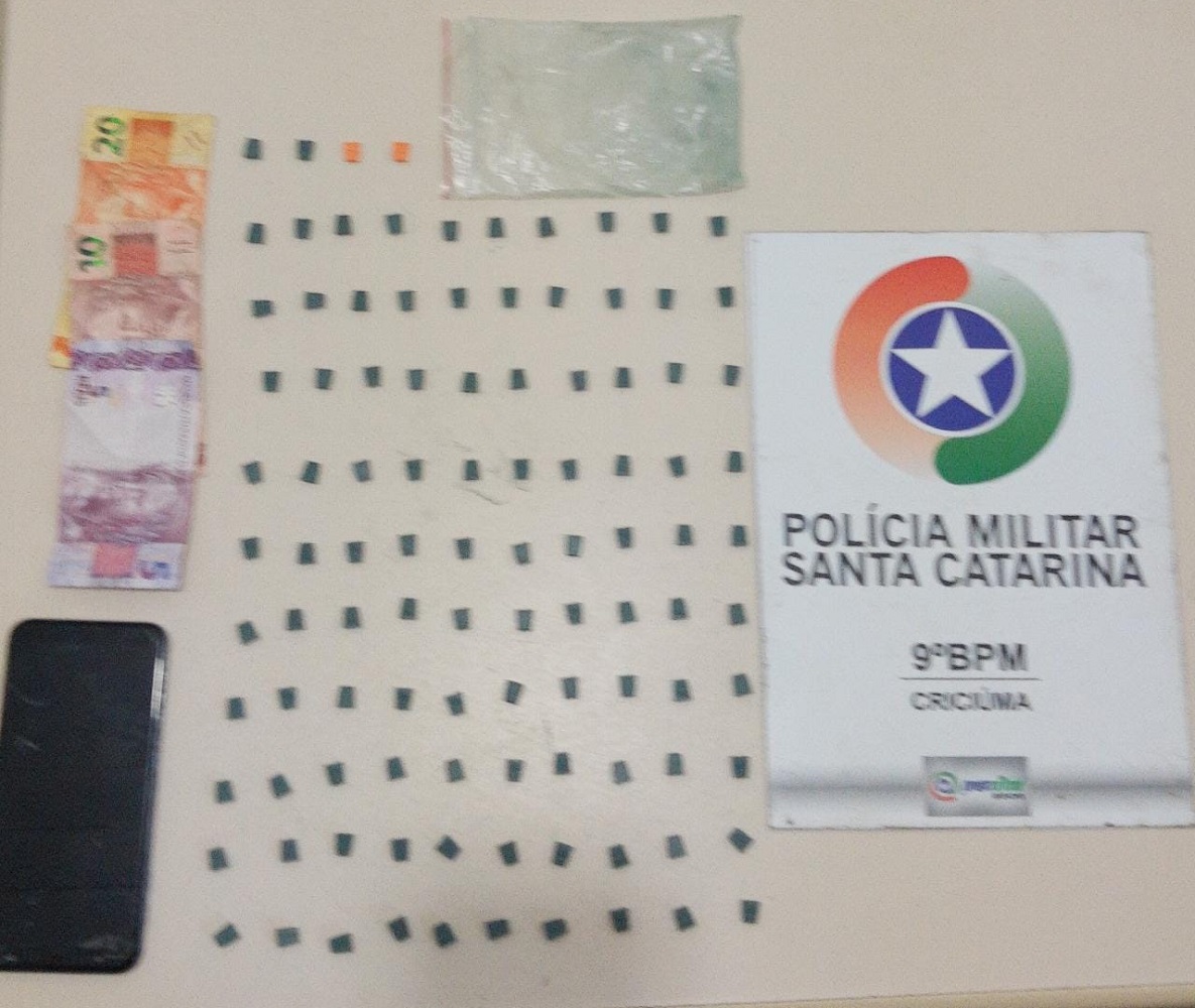 Um homem foi preso pela Polícia Militar, por volta das 17h30 dessa quarta-feira (22), no bairro Vida Nova, em Criciúma, por suspeita de tráfico de drogas.