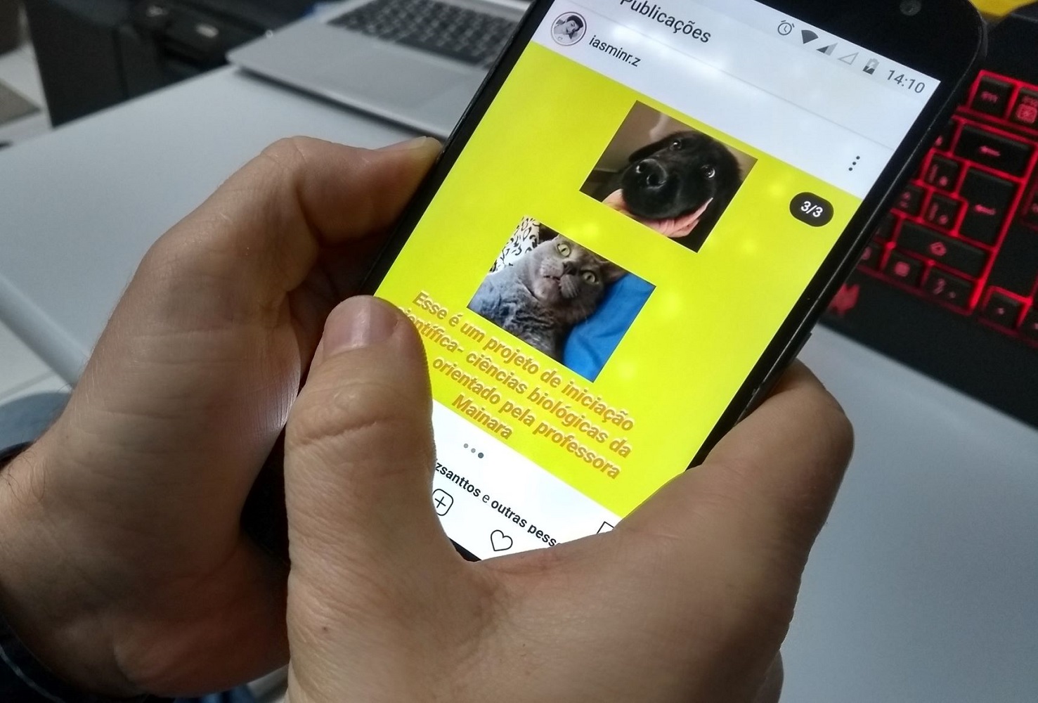 Para divulgar os trabalhos, cada grupo de acadêmicos de Ciências Biológicas usou as redes sociais. Foi assim com o grupo formado pelas estudantes Ana Júlia Botelho, Larissa Rossi, Iasmin Zeferino e Maria Eduarda Maccari, que usou o perfil de Iasmin para divulgar o trabalho “De onde vem as lombrigas dos animais domésticos?”. As estudantes escolheram falar sobre gatos e cachorros, que se estiverem infectados com toxocariose (infecção que resulta na invasão de órgãos por larvas de nematoides), suas fezes podem contaminar o solo. “Não tivemos nenhuma dificuldade para fazer o trabalho. Nos dividimos em equipes e divulgamos nas redes sociais, via Instagram. Tivemos um bom retorno das pessoas, que interagiram via enquetes e nas publicações”, conta Iasmin.