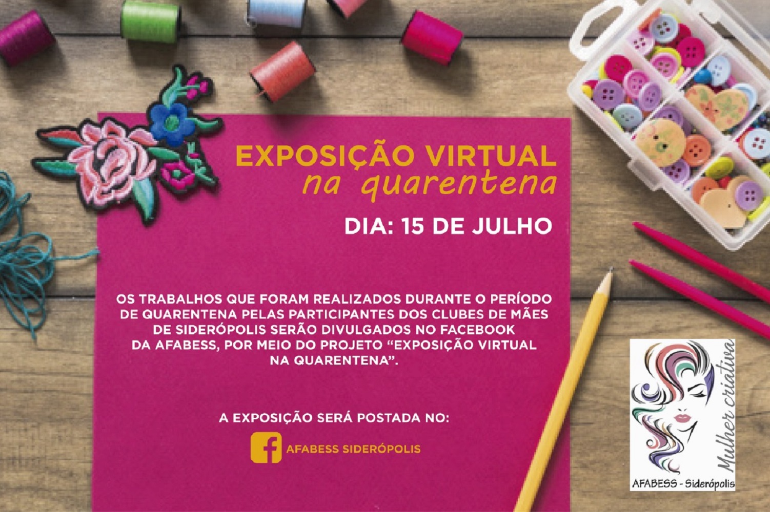 De forma virtual, na próxima quarta-feira, dia 15, a Associação Feminina de Assistência e Bem Estar Social de Siderópolis (Afabess) promoverá uma exposição dos trabalhos realizados pelos Clubes de Mães do Município. A mostra será divulgada por meio do perfil da Afabess no Facebook.