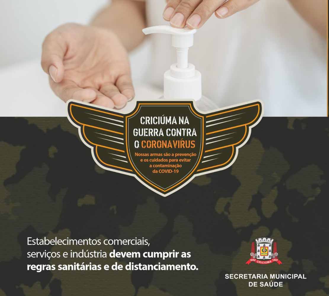 O número de pessoas diagnosticadas com Covid-19 segue aumentando no Sul de Santa Catarina. Em Criciúma, para fortalecer a prevenção e o combate ao novo coronavírus, a Administração Municipal idealizou a campanha ‘Criciúma na guerra contra o coronavírus’, lançada há duas semanas. Coordenada pela Secretaria Municipal de Saúde, a iniciativa intensificou as fiscalizações que visam o cumprimento das medidas estabelecidas pelo decreto municipal n° 815/2020, de 25 de junho de 2020, além de decretos e portarias da Secretaria de Estado da Saúde (SES).