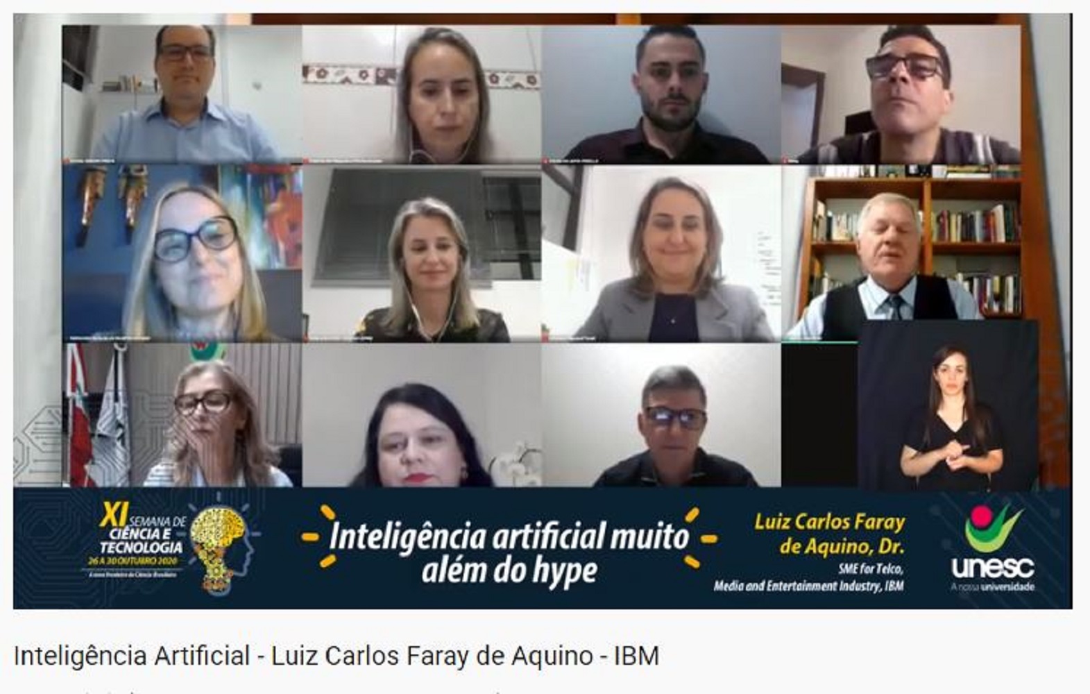 O webinar de abertura da 11ª Semana de Ciência e Tecnologia (SCT) da Unesc já deu o tom do que espera a comunidade acadêmica entre os dias 26 a 30 de outubro. Isso porque o evento virtual realizado na noite desta quinta-feira (6/8) abordou a temática “Inteligência Artificial (IA) muito além do hype” de forma profunda e disruptiva, mostrando de forma clara o crescimento e as possibilidades oferecidas pela ferramenta. O convidado para ministrar palestra sobre o assunto foi o Media and Entertainment Industry da IBM, Luiz Carlos Faray de Aquino.