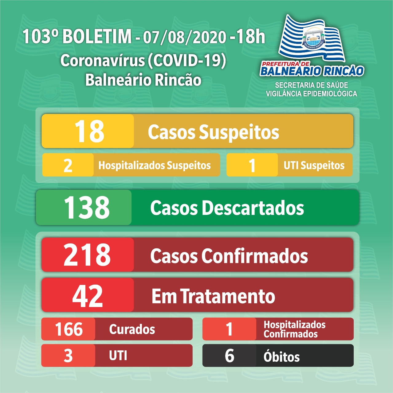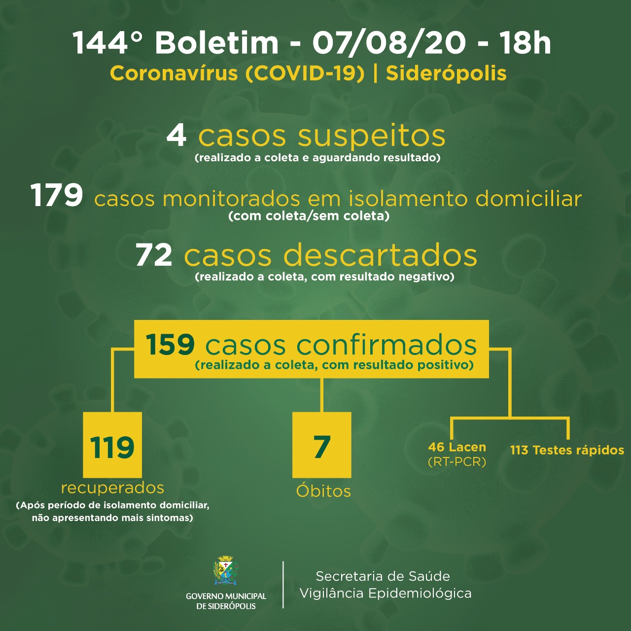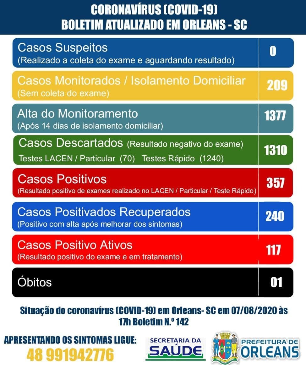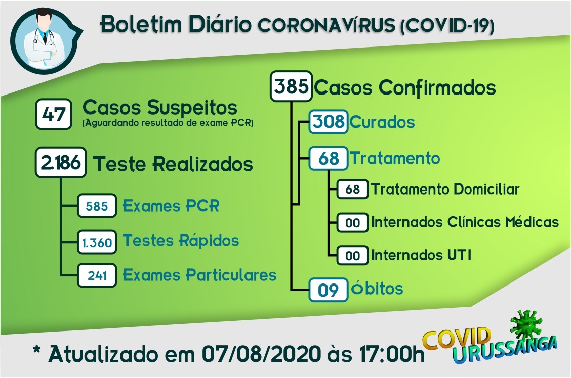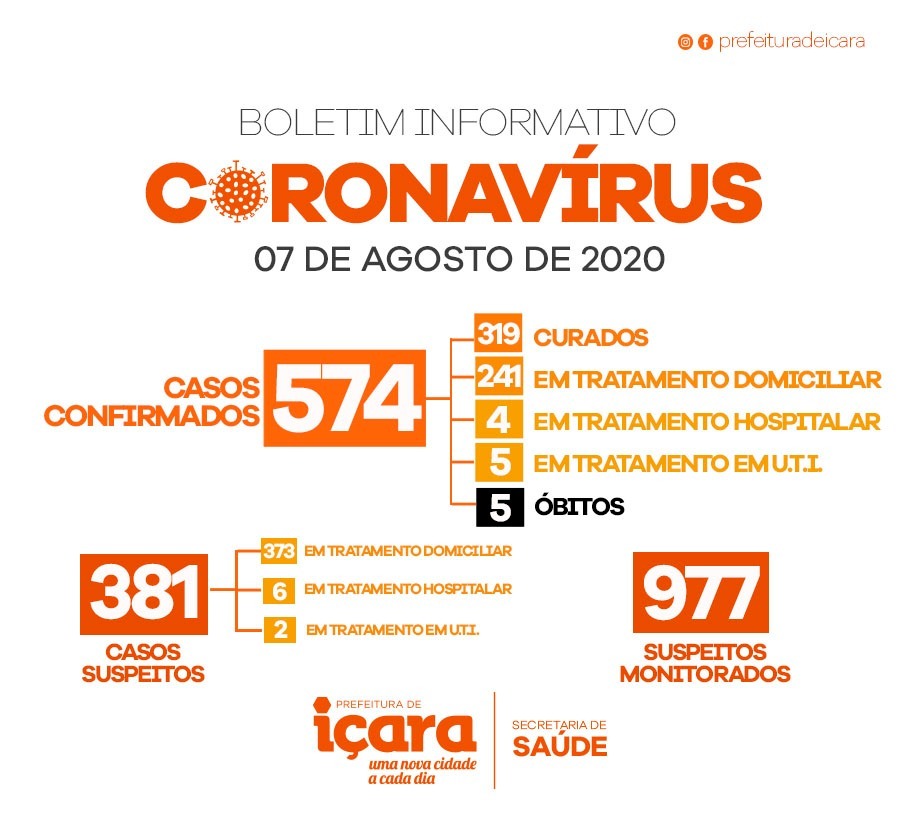 Confira os números de casos confirmados até esta sexta-feira, dia 7 de agosto de 2020.
