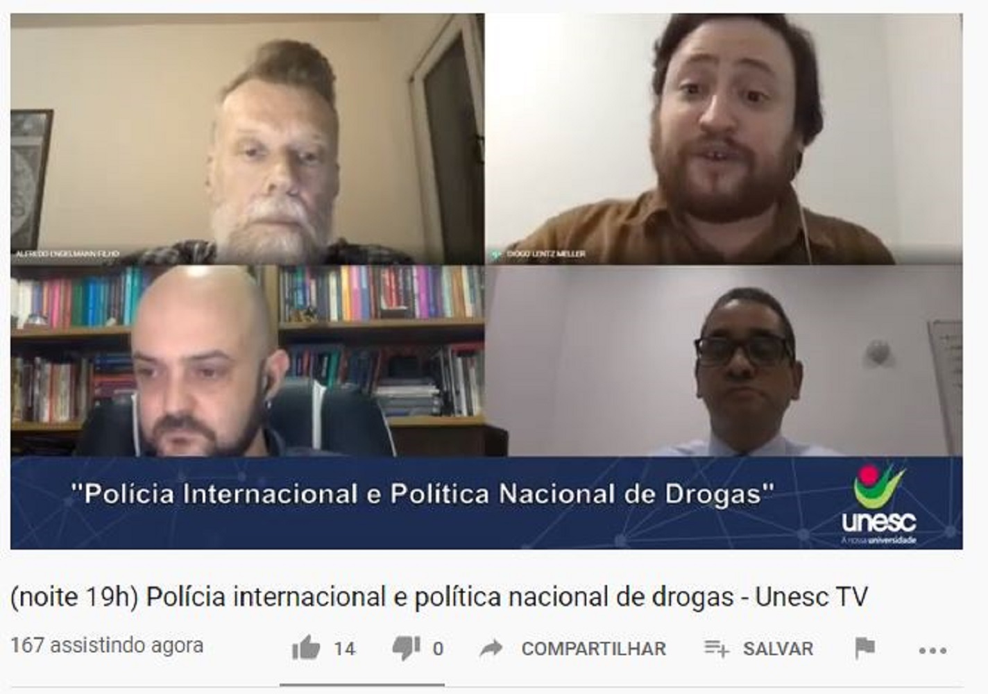 As comunidades acadêmica e externa estão tendo uma oportunidade ímpar neste mês de agosto. Desde o dia 3 até o dia 14, o curso de Direito da Unesc está promovendo o primeiro Diálogos Virtuais do Direito, evento 100% online e aberto ao público. Entre as mais de 40 temáticas diferentes abordadas por especialistas, na noite desta segunda-feira (10/8), o evento contou com abordagens sobre políticas de drogas e o direito internacional privado e a ordem pública.