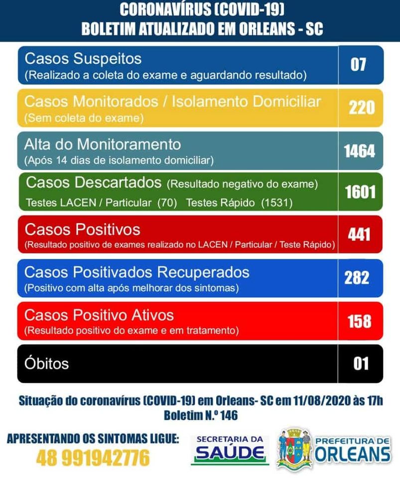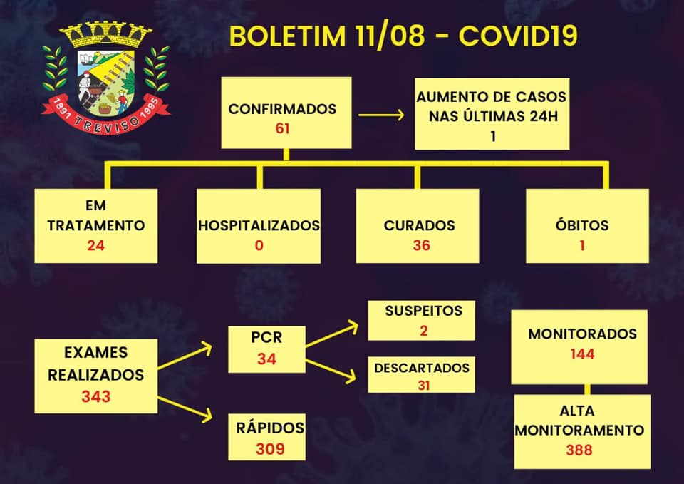 Confira os números de casos confirmados até esta terça-feira, dia 11 de agosto de 2020.
