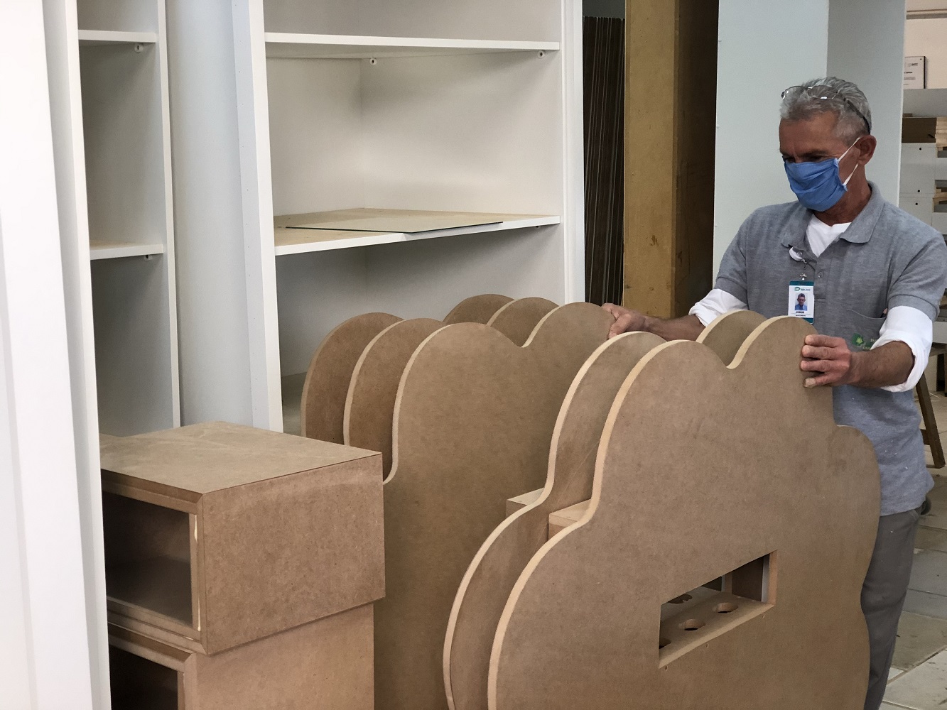 Para se ter uma ideia, o setor tem capacidade para produção de até 50 criados mudo utilizados para as refeições por mês (caso toda a produção fosse voltada para este produto). Somente em 2019 foram utilizados aproximadamente 1.300 metros quadrados de MDF na fabricação de móveis para a instituição. “O trabalho é realizado sempre em conjunto, a arquiteta traz o projeto, que é discutido com a equipe e colocado em execução. Entre os últimos trabalhos que foram realizados pelo setor de marcenaria estão os suportes para as tv´s e videogames, em formato de nuvem, utilizados na oncologia pediátrica”, explica Jorge.