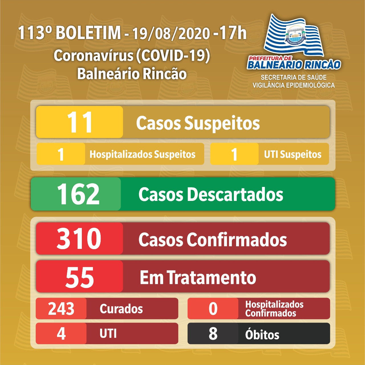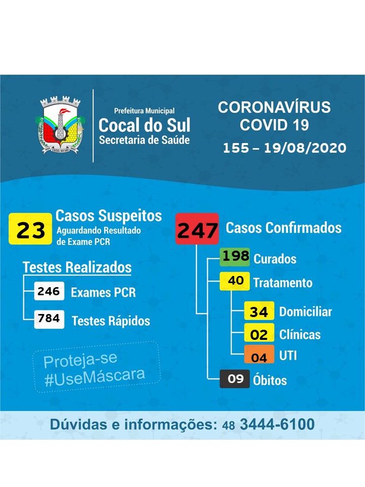 Confira os números de casos confirmados até esta quarta-feira, dia 19 de agosto de 2020.