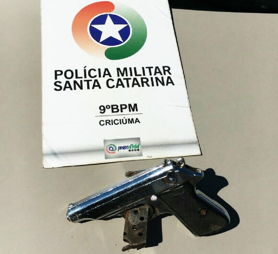 Uma arma de fogo foi recolhida pela Polícia Militar, na tarde desse sábado (22), após ser encontrada abandonada em Criciúma.