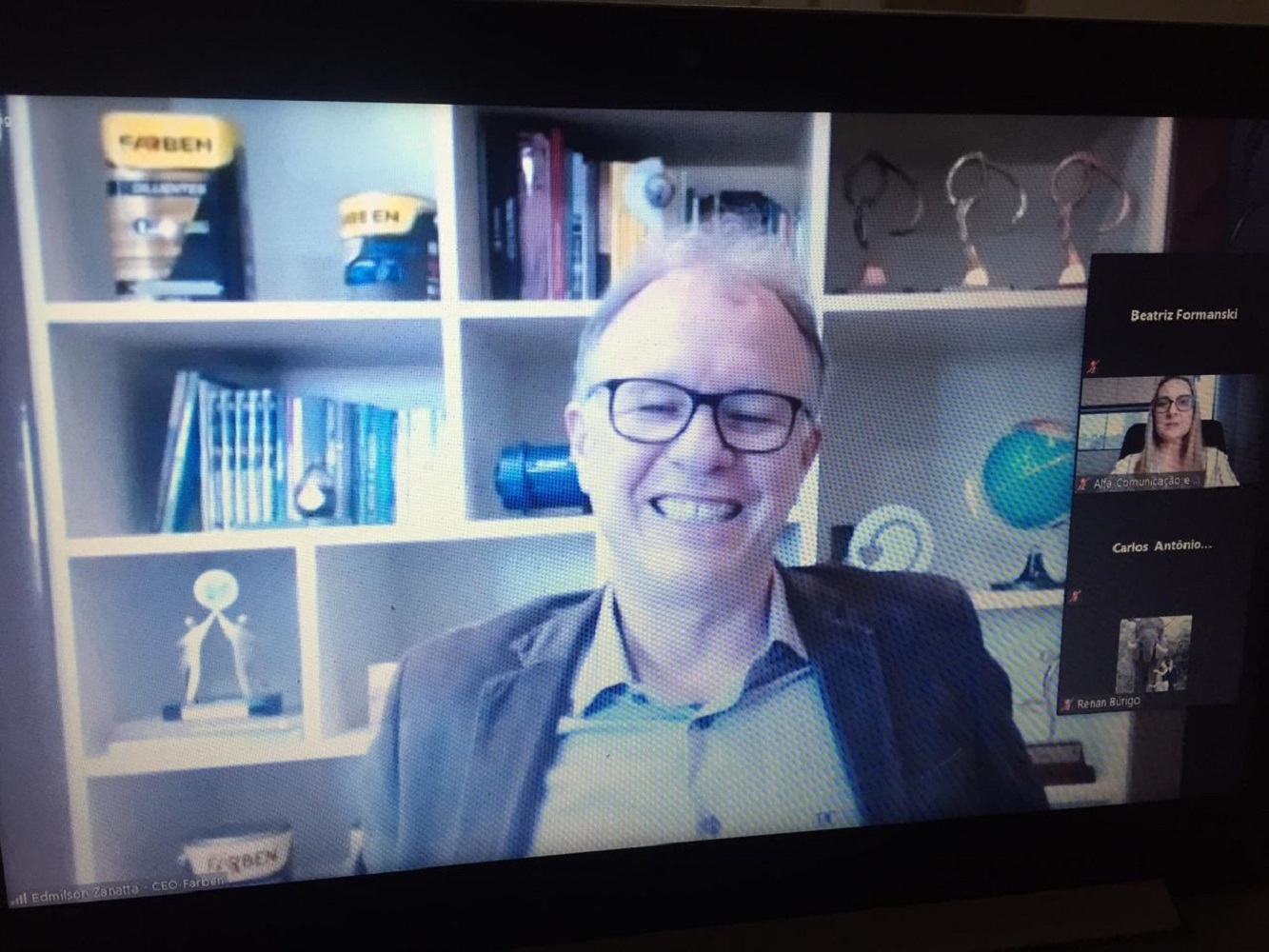 A aceleração da transformação digital foi um dos principais aprendizados compartilhados pelo CEO da Tintas Farben, Edmilson Zanatta na manhã desta quarta-feira (26). O encontro virtual abriu a segunda temporada do Alfa Talk, promovido pela Alfa Comunicação e Conteúdo que tem como objetivo compartilhar e promover os aprendizados adquiridos com a pandemia com a participação de 15 CEOs e gestores de empresas do sul de Santa Catarina.