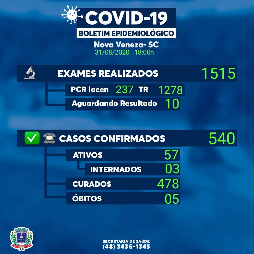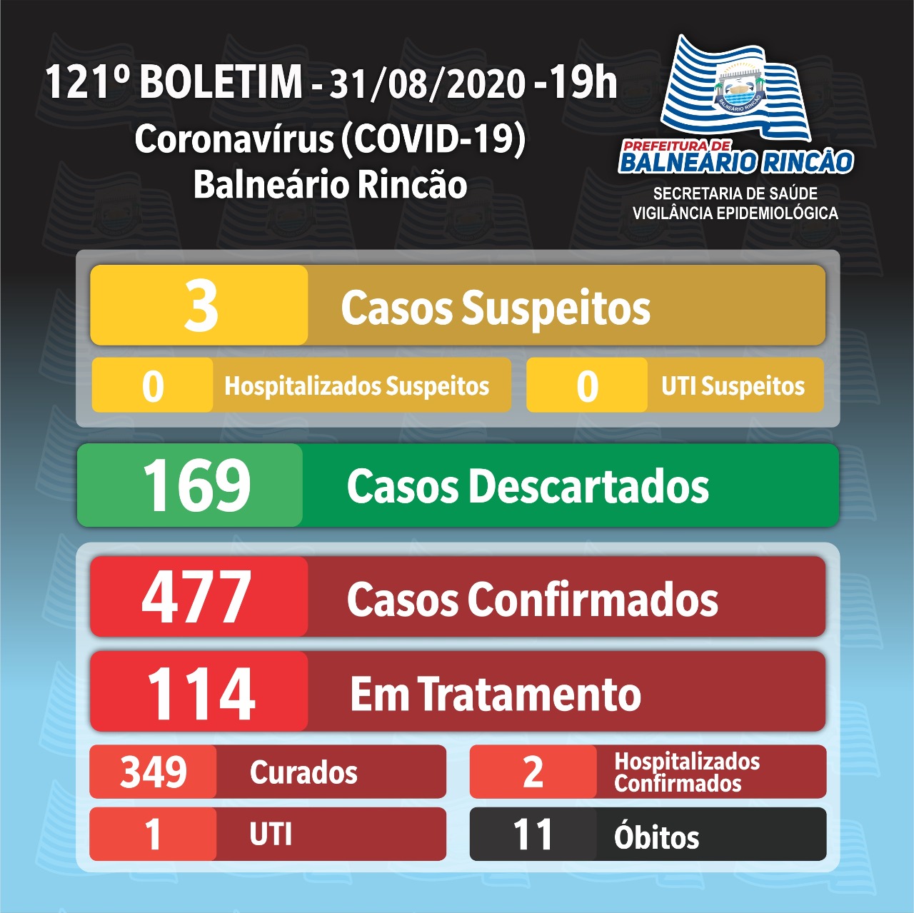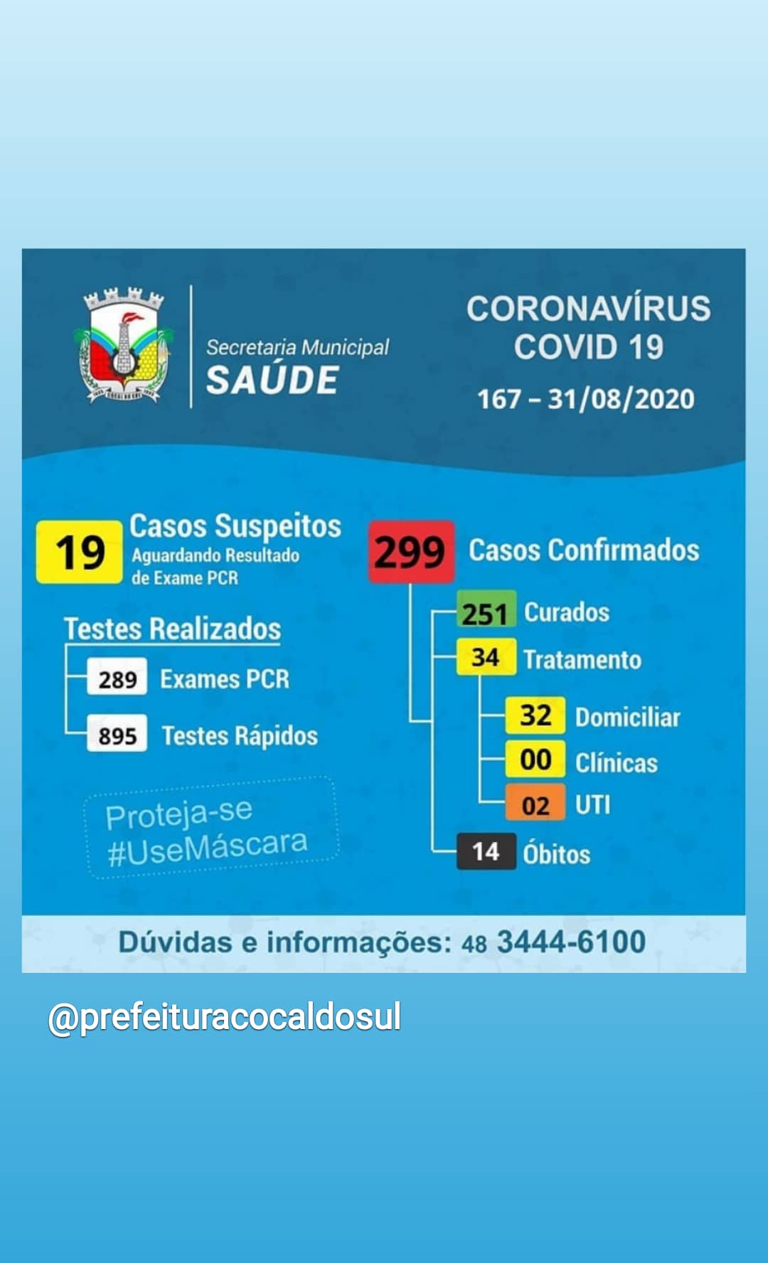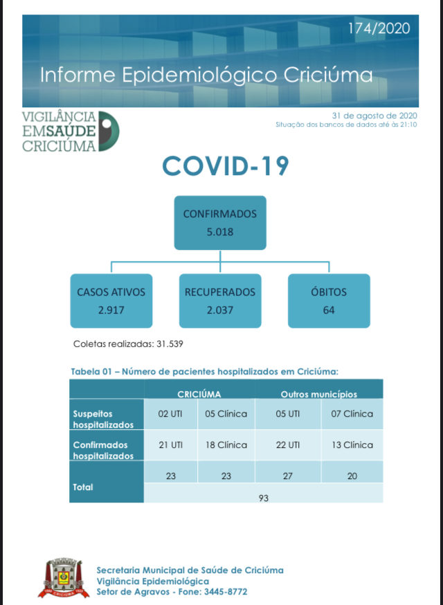 Confira os números de casos confirmados até este segunda-feira, dia 31 de agosto de 2020.