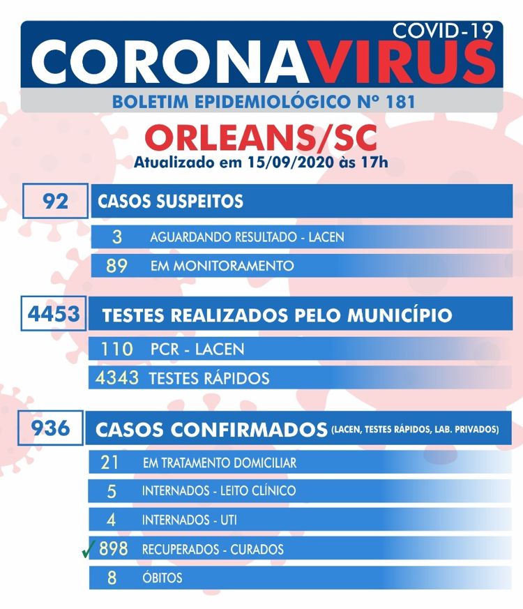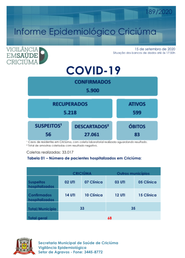Confira os números de casos em cada cidade até essa terça-feira, dia 15 de setembro de 2020.
