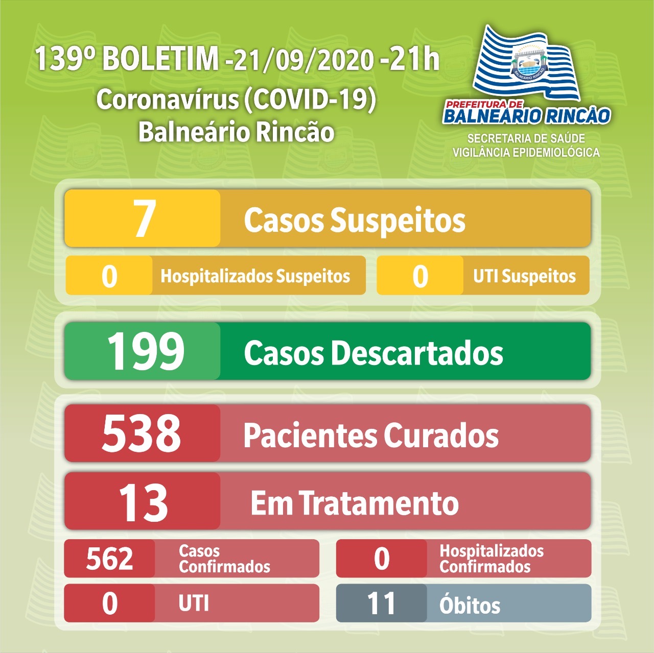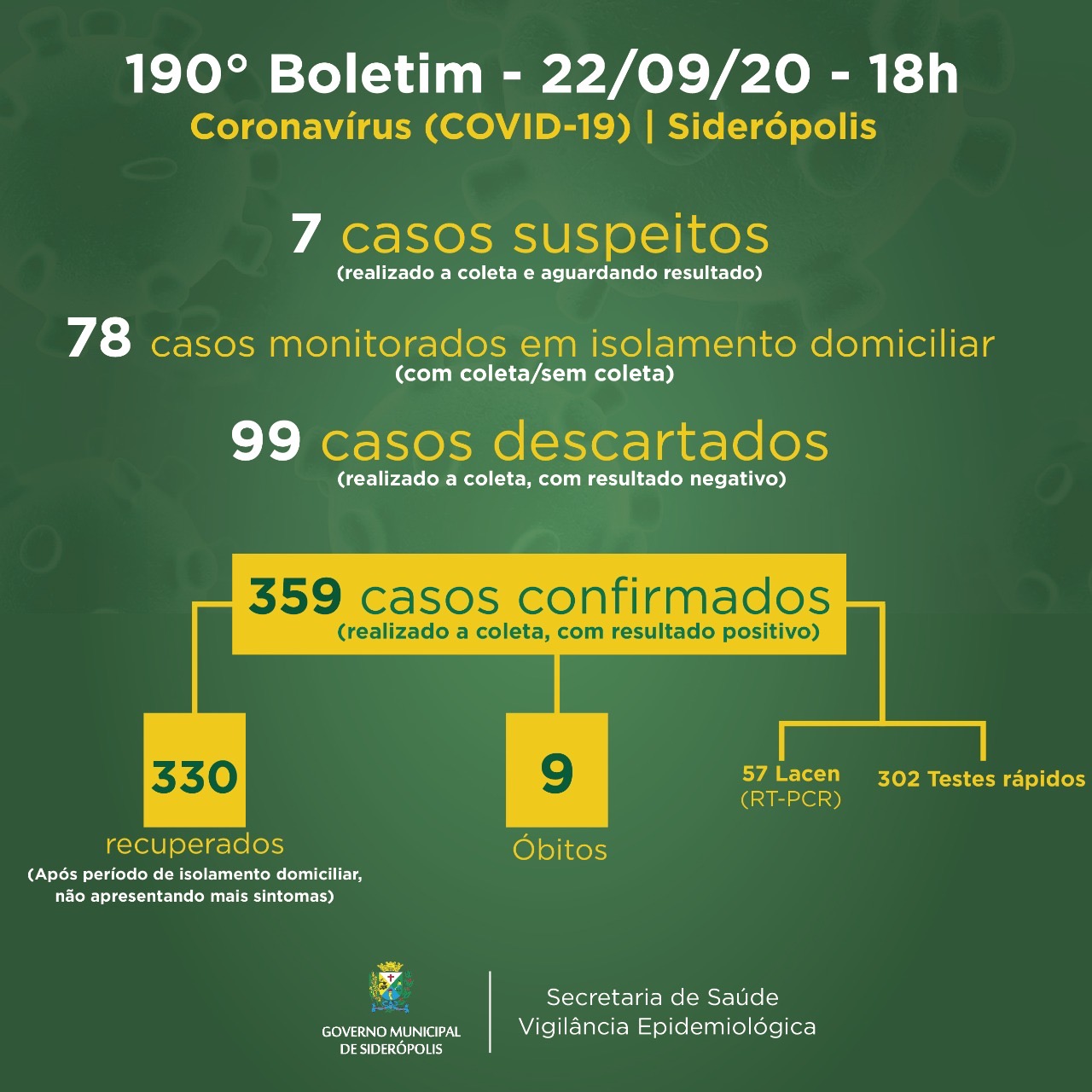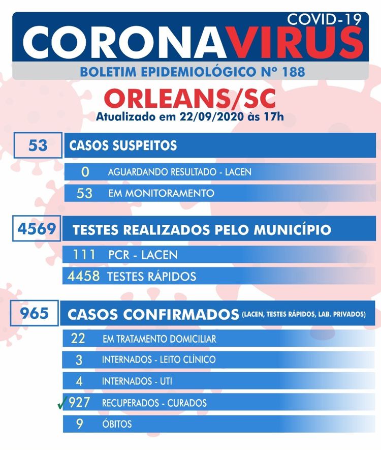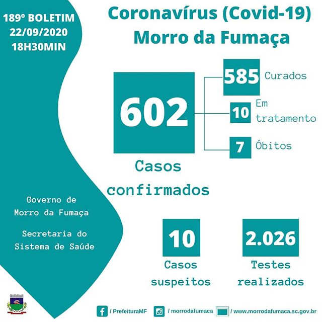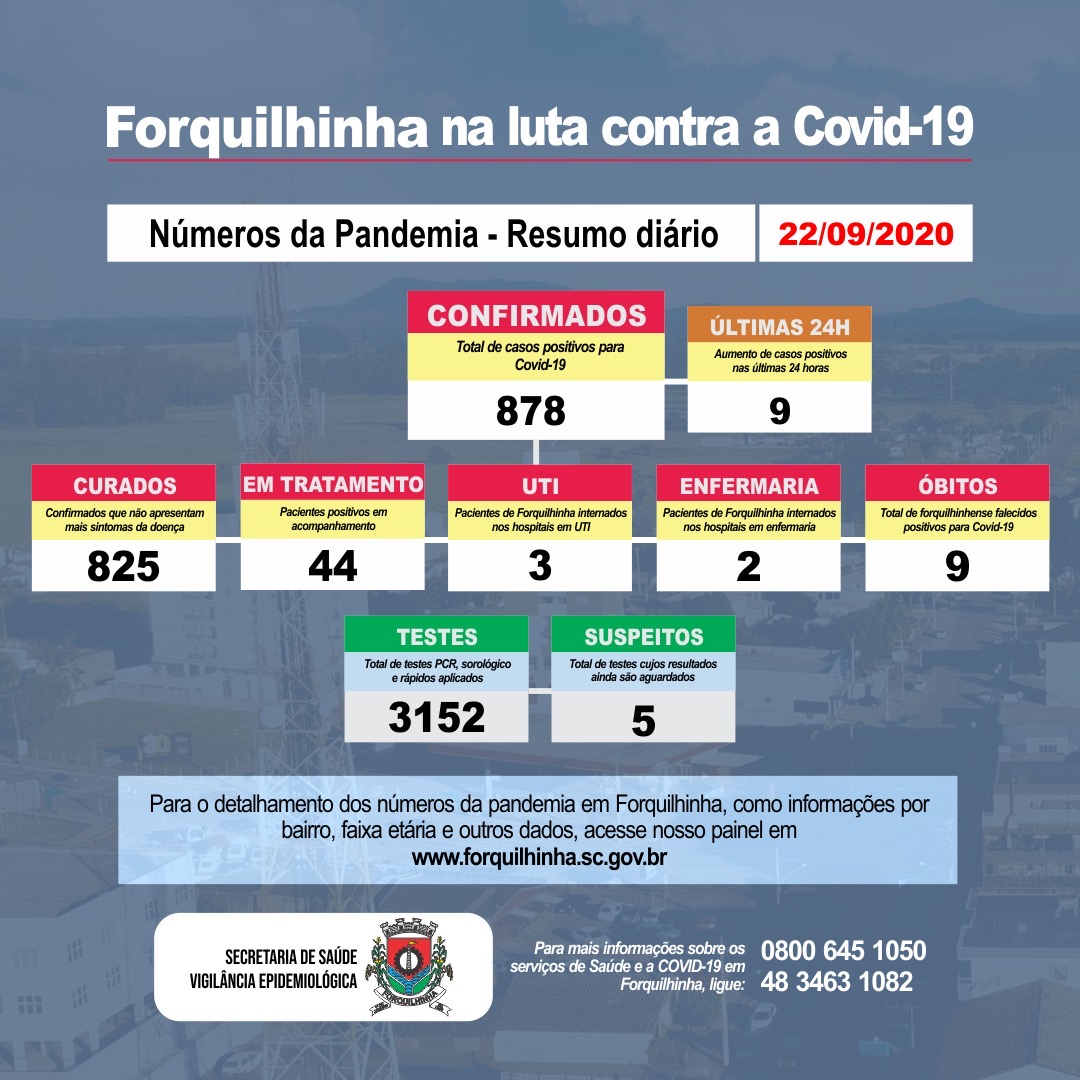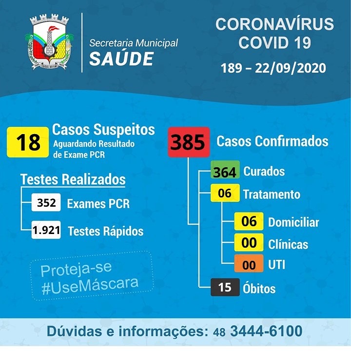 Confira os números de casos confirmados em cada uma das cidades até essa terça-feira, dia 22 de setembro de 2020.