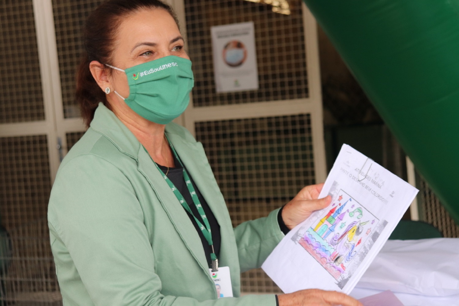 A diretora do Colégio Unesc, Giselle dos Passos Vieira, explica que no início da pandemia, com o isolamento social e a recomendação de as pessoas não saírem de casa, o Colégio optou por entregar os materiais nas residências dos estudantes. Meses depois, com as pessoas voltando a rotina gradualmente e a escola sem aulas, já foi possível iniciar as entregas no sistema drive thru. “Também é um momento de matar a saudade, mesmo que seja pela janela do veículo. Tem alegria e emoção, com entrega de cartas e muita transmissão de carinho. Tivemos um ano desafiador, e os docentes e estudantes foram muito fortes, comprometidos para superar este desafio. Cada um deu seu melhor, uma lição de resiliência e adaptação e mente aberta ao novo, sem falar nas famílias que foram uma importante base para que tudo funcionasse”, destacou.