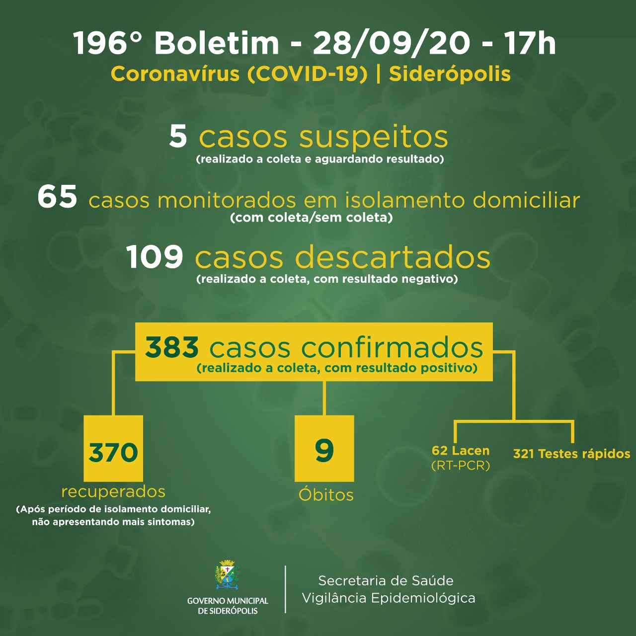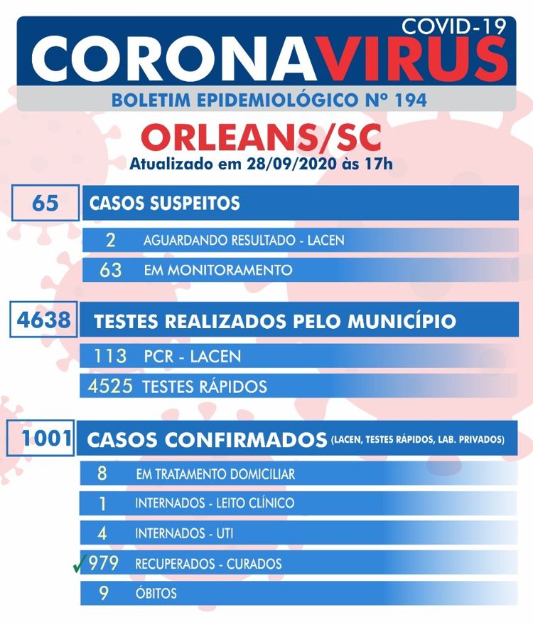 Confira os números de casos em cada cidade até essa segunda-feira, dia 28 de setembro de 2020.