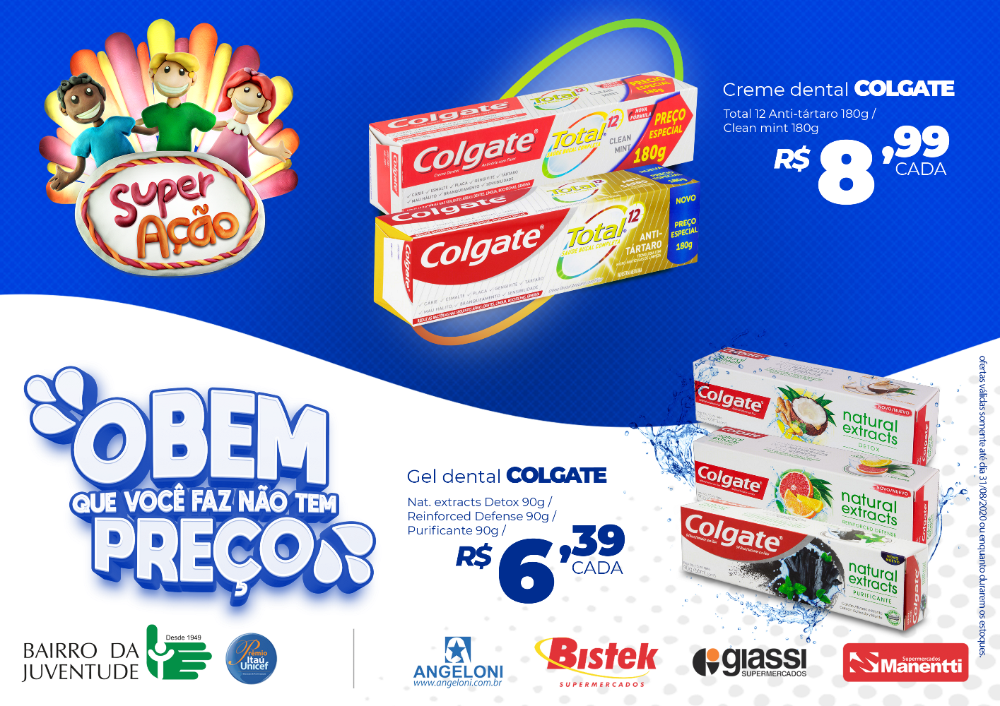 O Bairro da Juventude entra em outubro com um novo parceiro na SuperAção. A campanha que beneficia a Instituição desde 2012 tem a parceria dos supermercados Angeloni, Bistek, Giassi e Manentti, e conta, pela primeira vez, com a participação da Colgate.