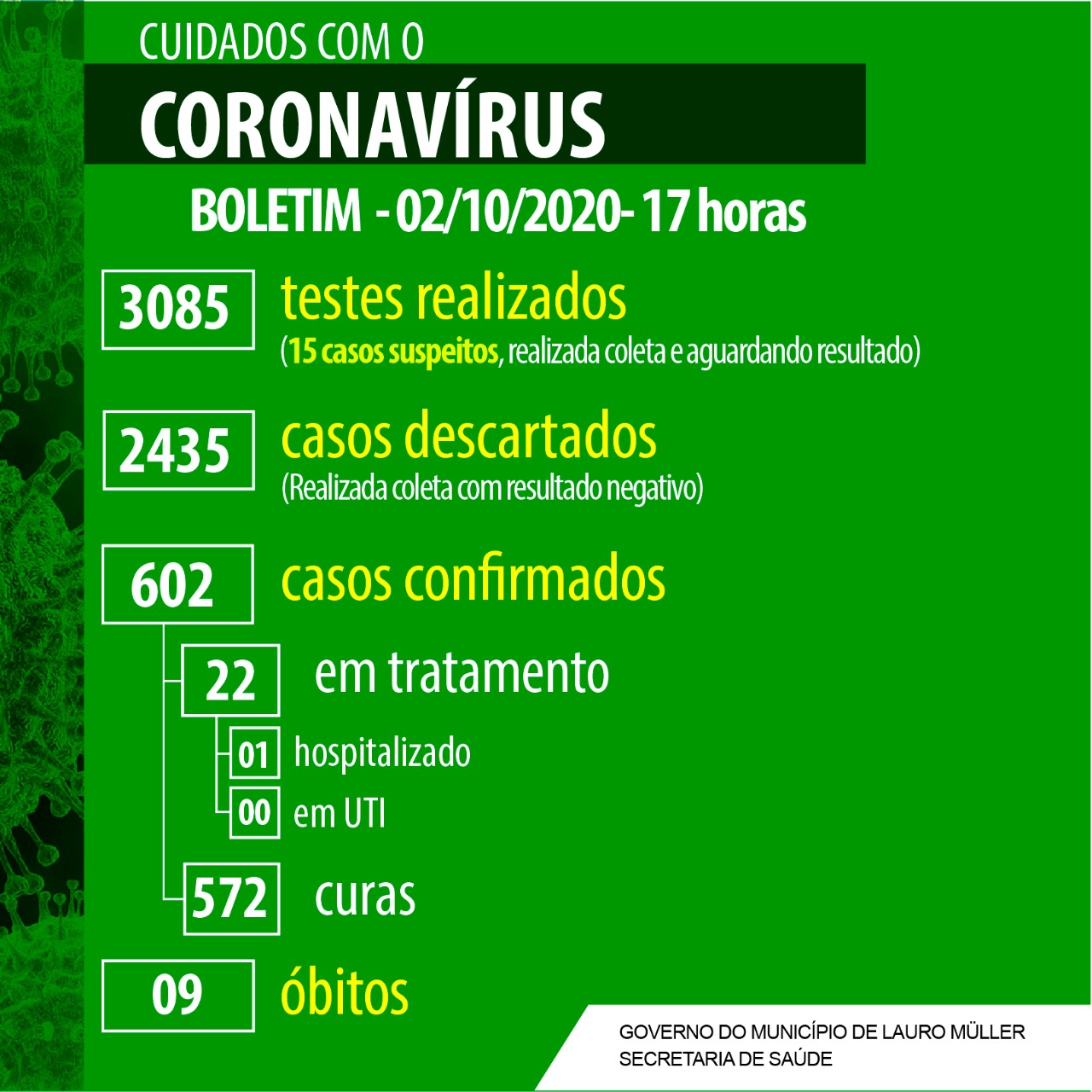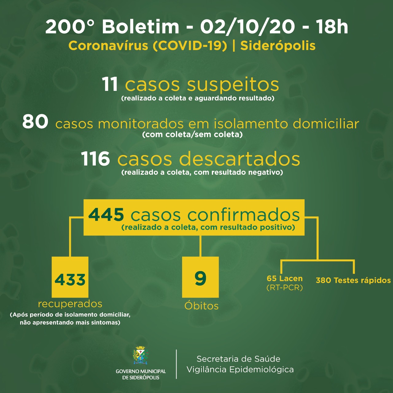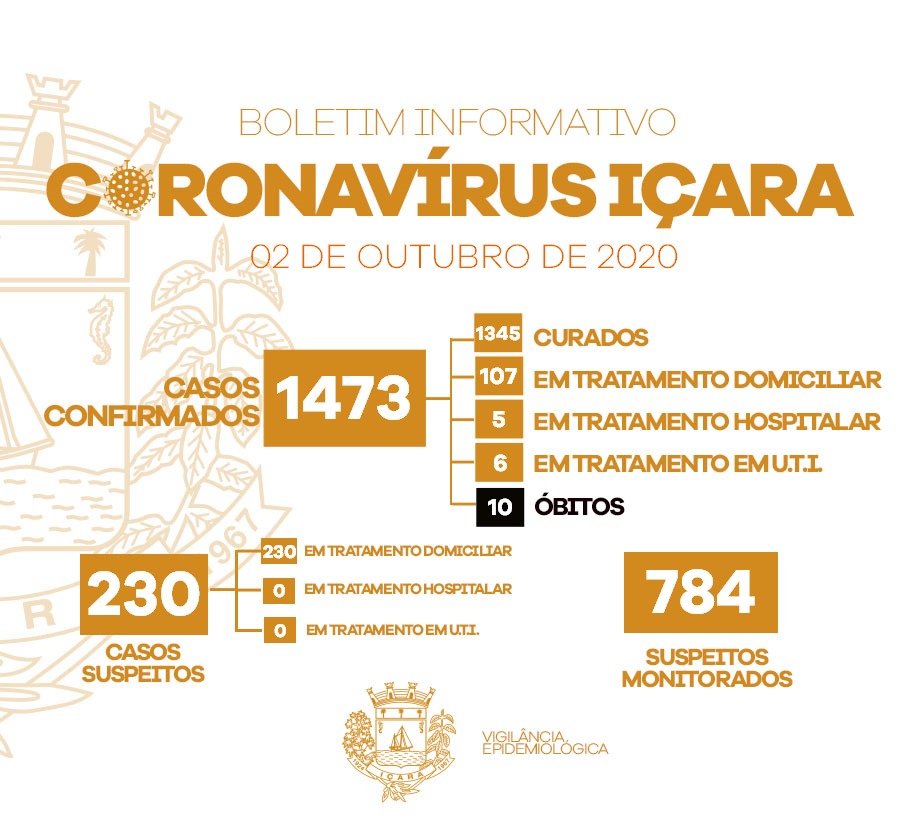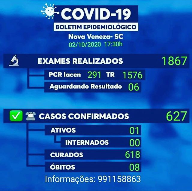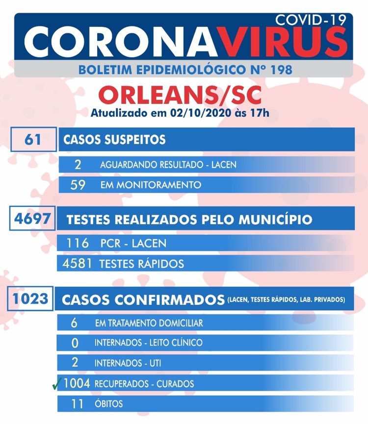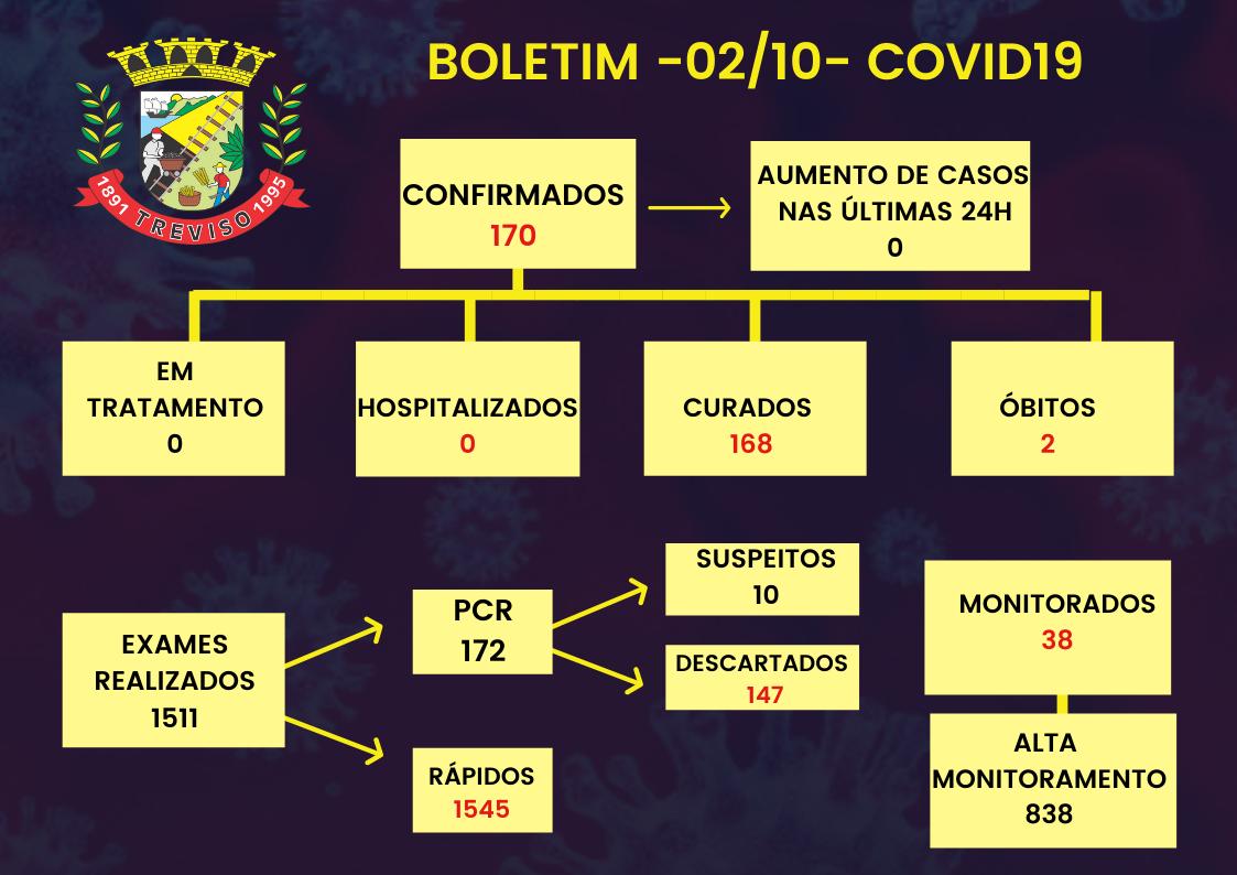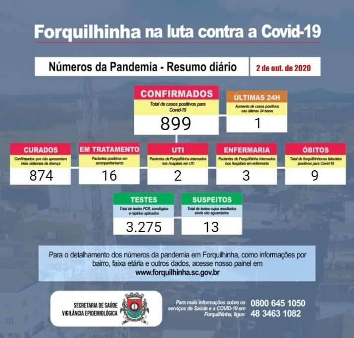 Confira os números de casos confirmados em cada cidade até essa sexta-feira, dia 2 de outubro de 2020.