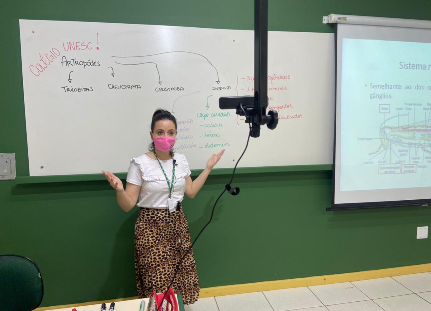 Antes mesmo de retornarem às salas, alguns professores têm utilizado a estrutura física do Colégio Unesc para ministrar as aulas, como os laboratórios de fotografia, ateliê de arte, salas de dança e o Museu de Zoologia, por exemplo.