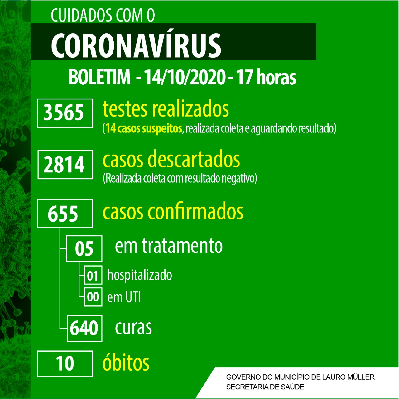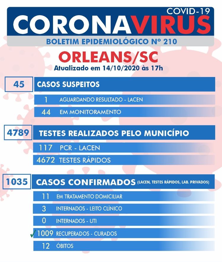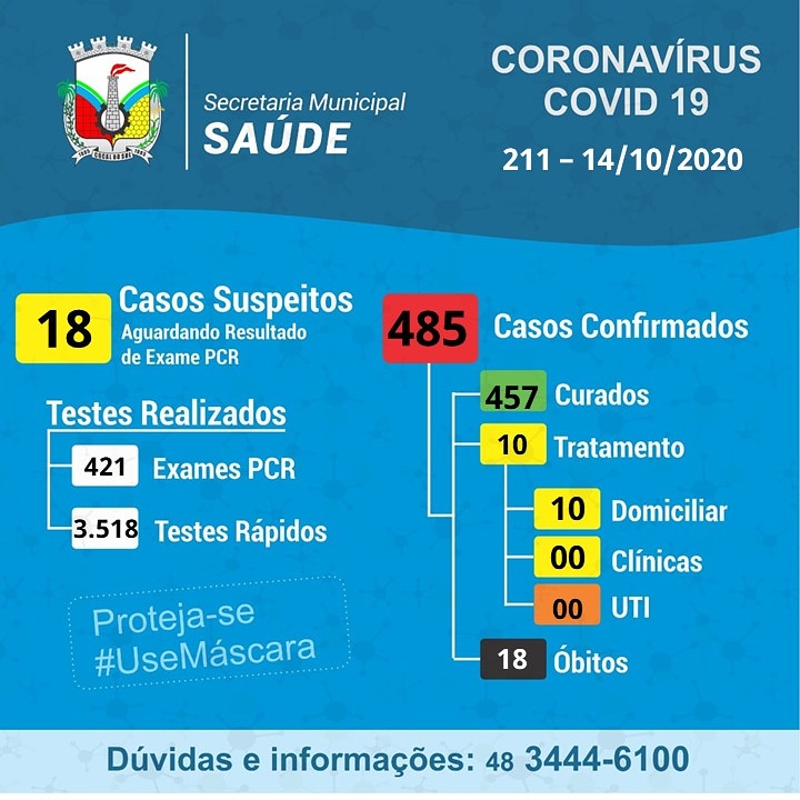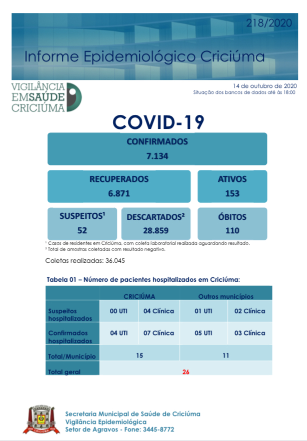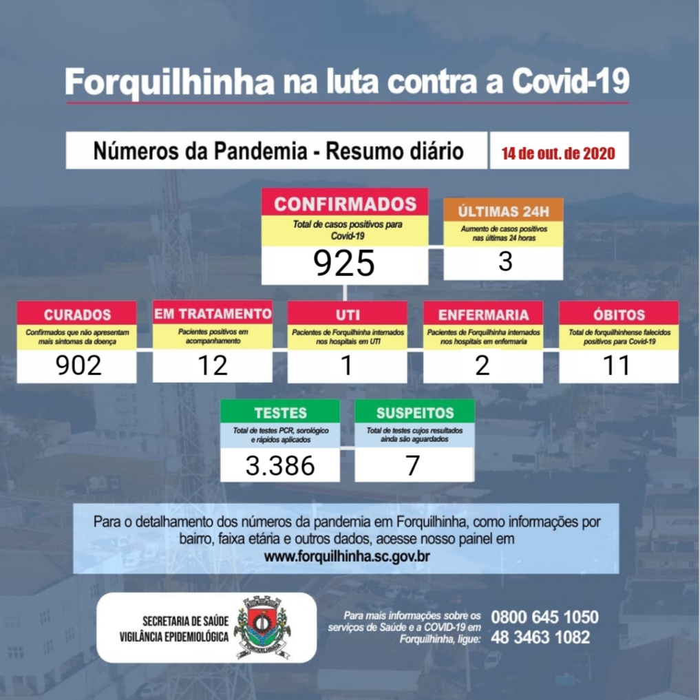 Confira os números de casos em cada cidade até essa quarta-feira, dia 14 de outubro de 2020.