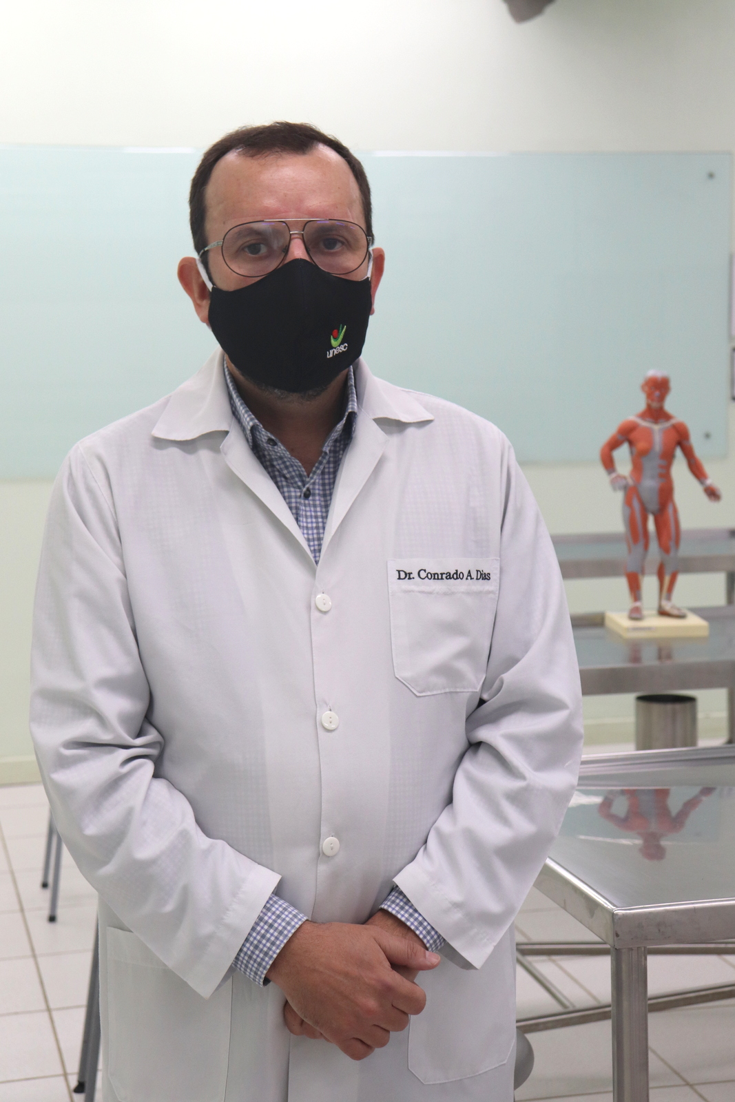 Conrado iniciou a vida docente justo em um dos momentos mais delicados não só para a academia, mas para toda a comunidade. Em meio à pandemia de Covid-19 o professor iniciou as atividades no curso de Medicina com a disciplina de anatomia, tendo a missão de receber os novos acadêmicos, ávidos por conhecer de perto tudo o que o corpo humano representa. Inicialmente o contato com a turma se deu de forma virtual e, após algumas semanas, foram retomados os encontros presenciais divididos em grupos menores.