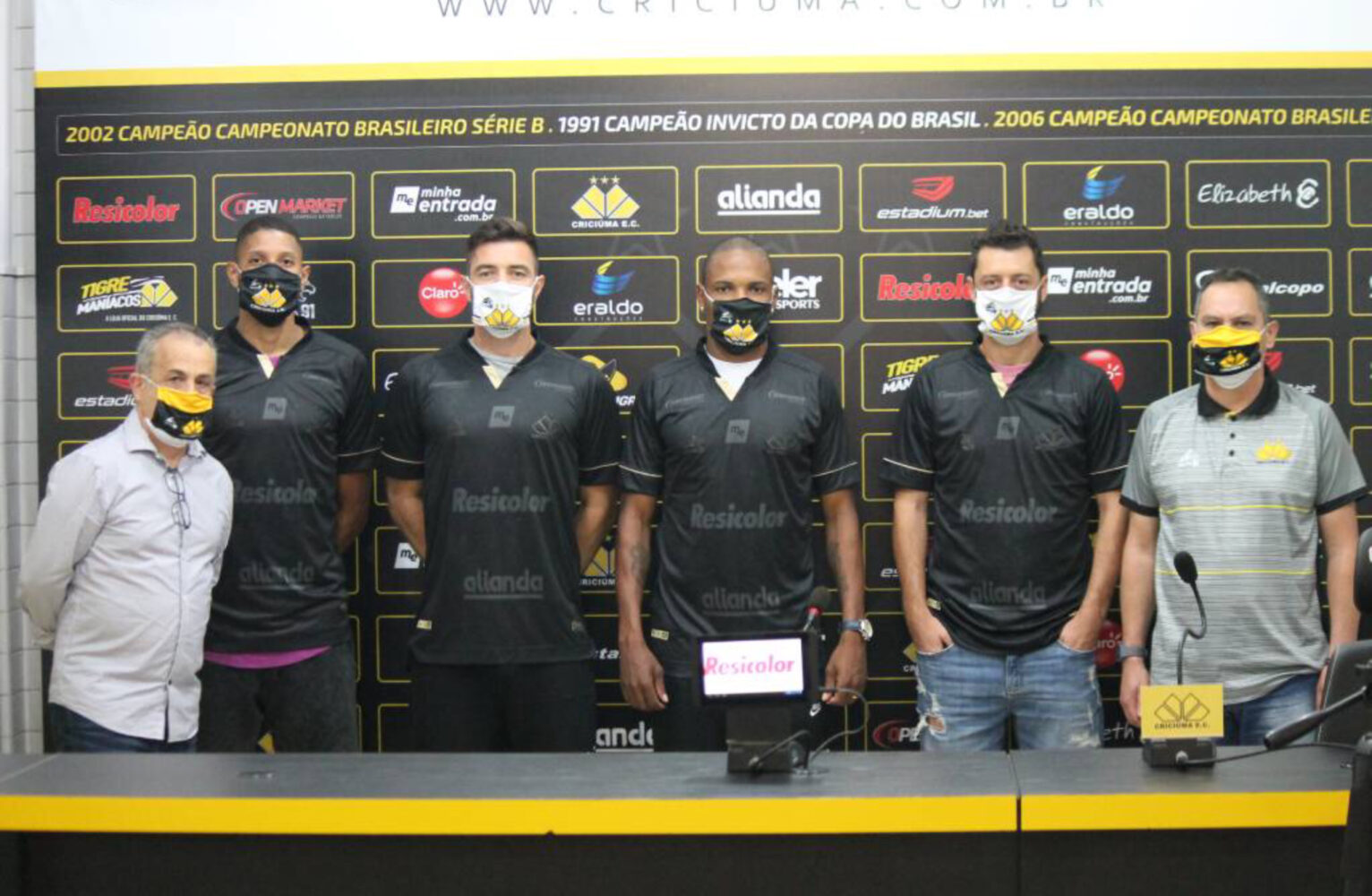 O Criciúma confirmou nesta quarta-feira (21/10) mais quatro reforços para o Campeonato Brasileiro da Série C. O Tigre contratou o meia Felipe Menezes, o volante Marino e os zagueiros Helder e Fernando Lombardi, todos estavam atuando na Série B da competição nacional este ano. Com contrato até o fim do campeonato, os atletas foram apresentados pelo superintendente do clube Serginho Lopes, e o assessor da presidência Ocimar Bolicenho, na Sala de Imprensa Clésio Búrigo, no estádio Heriberto Hülse.
