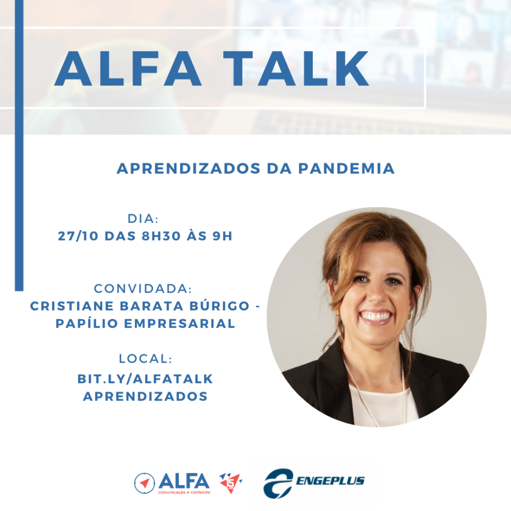 A pandemia do novo coronavírus acelerou a implantação de novos modelos de negócio e a adoção de soluções inovadoras que impactaram diretamente a prestação de serviço dos orientadores de negócios. Como ser a pessoa que auxilia as empresas em um cenário de tantas incertezas? Com o intuito de compartilhar os aprendizados do ramo de consultoria, a manhã desta terça-feira (27) será marcada pela 10ª edição do Alfa Talk, com a participação da orientadora de negócios, Cristiane Barata Búrigo, da Papílio Empresarial.