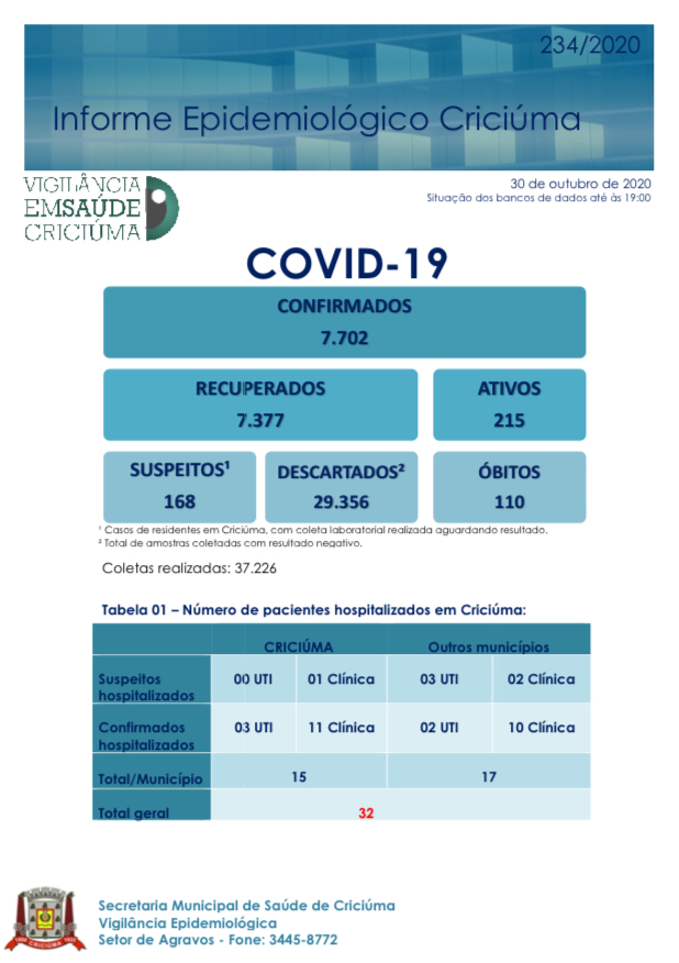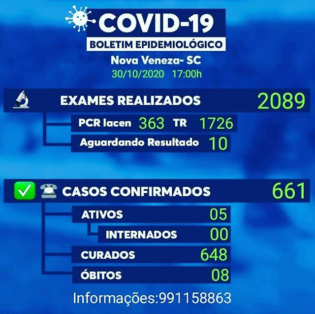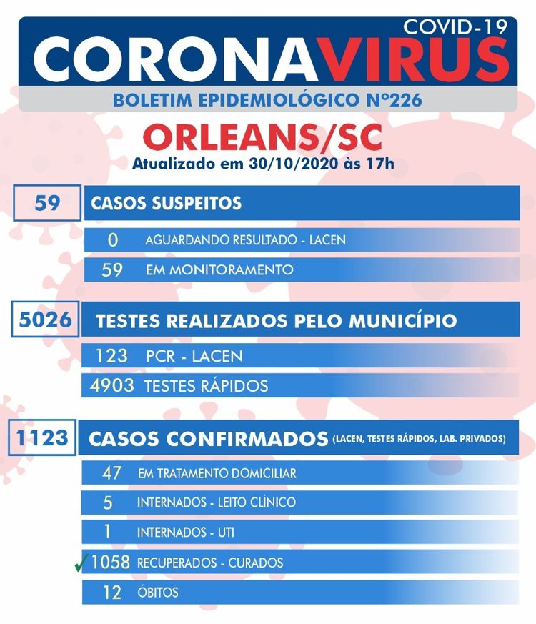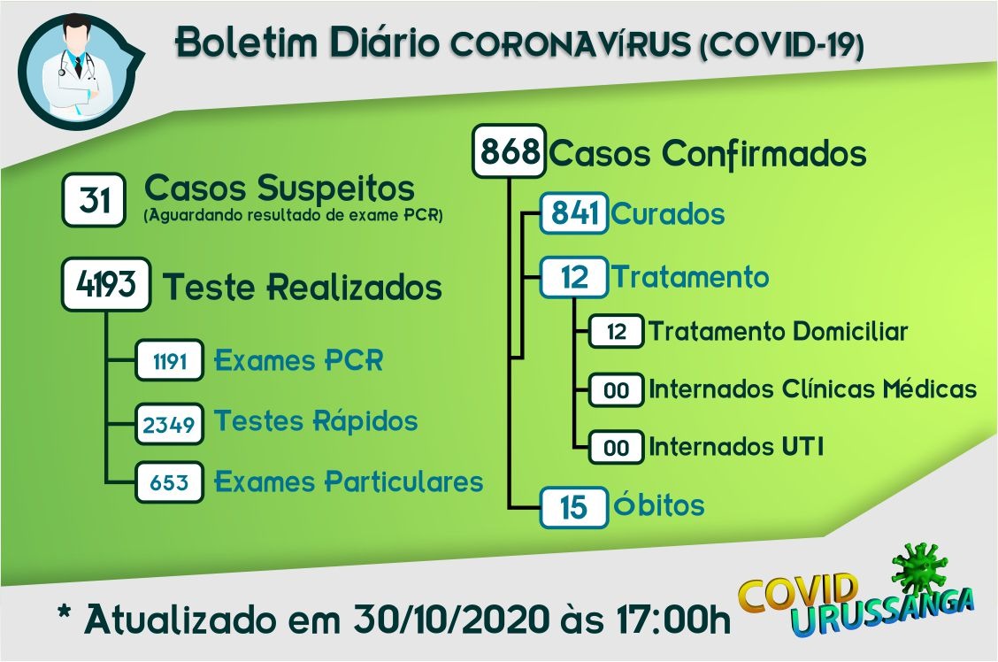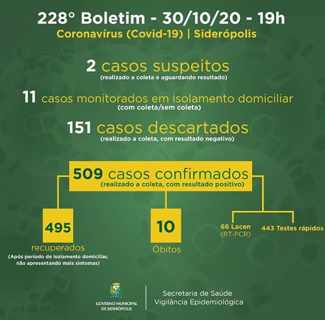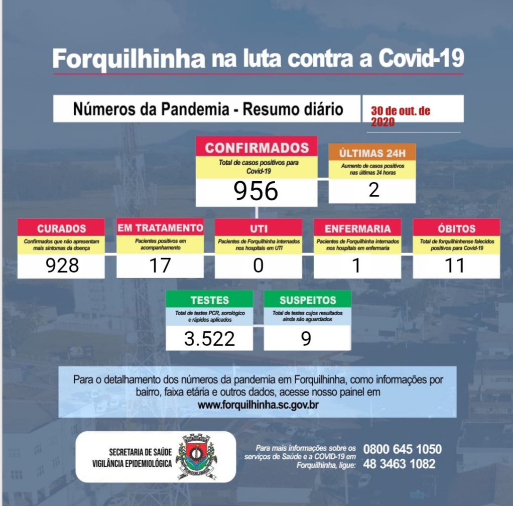Confira os números de casos confirmados em cada cidade até essa sexta-feira, dia 30 de outubro de 2020.