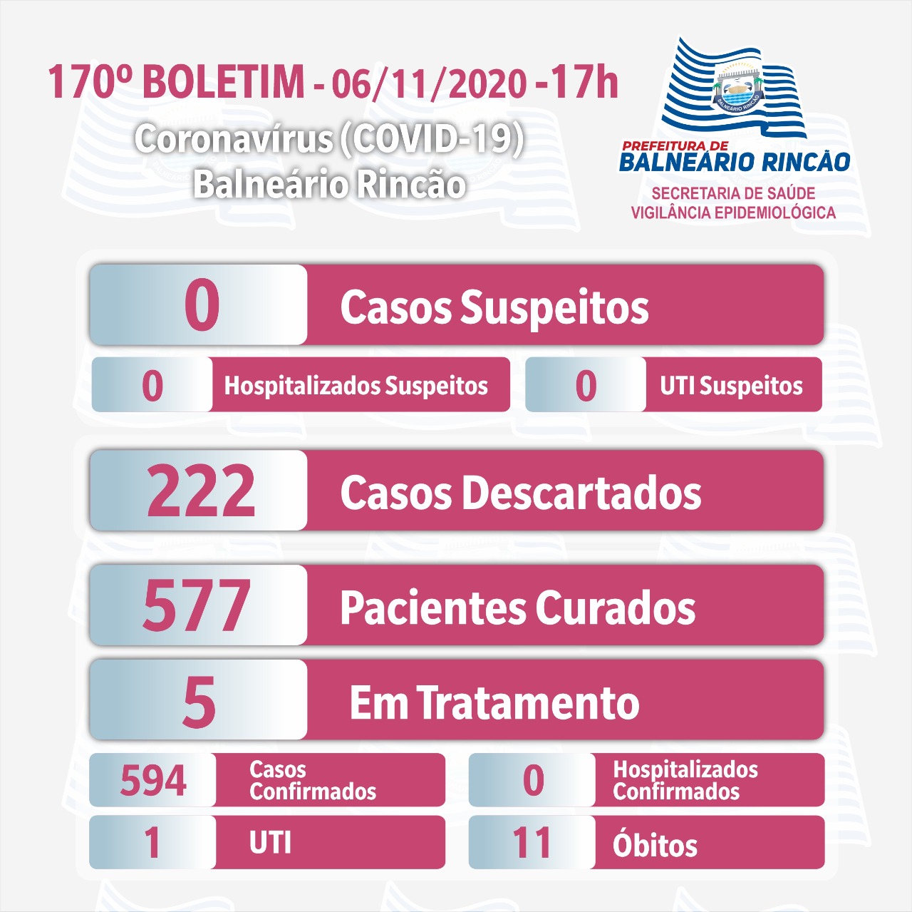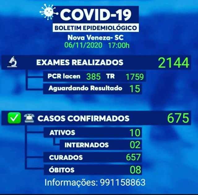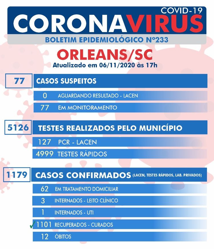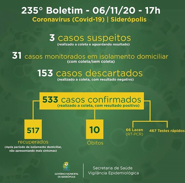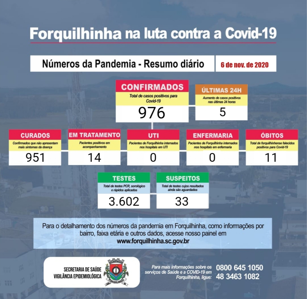 Confira os números de casos confirmados em cada cidade até essa sexta-feira, dia 6 de novembro de 2020.