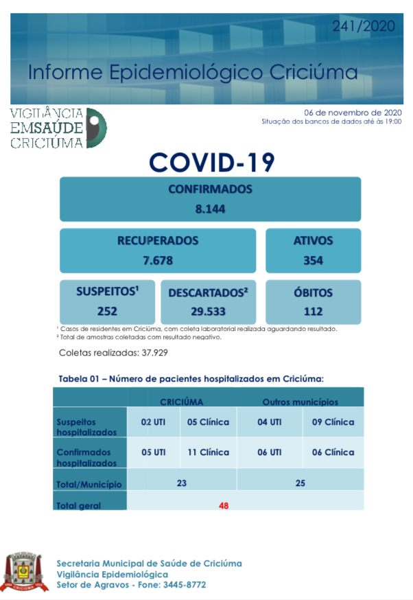 O Portal Mais Sul divulga diariamente os números de casos confirmados de Covid-19 em cada uma das 12 cidades da Região Carbonífera. Os dados são divulgados pelas secretarias municipais de saúde.