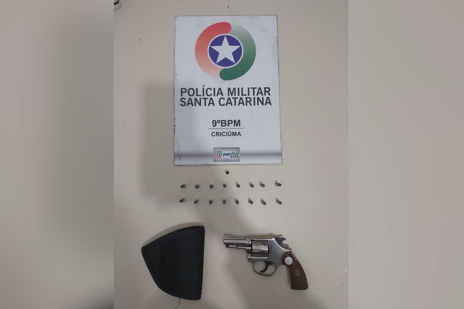 Conforme as informações do 9º Batalhão da PM, a Guarnição Reforçada recebeu a informação de que havia um homem armado num estabelecimento comercial. Os policiais foram ao local, abordaram o suspeito e encontraram um revólver de calibre .22, com numeração suprimida, e 16 munições.