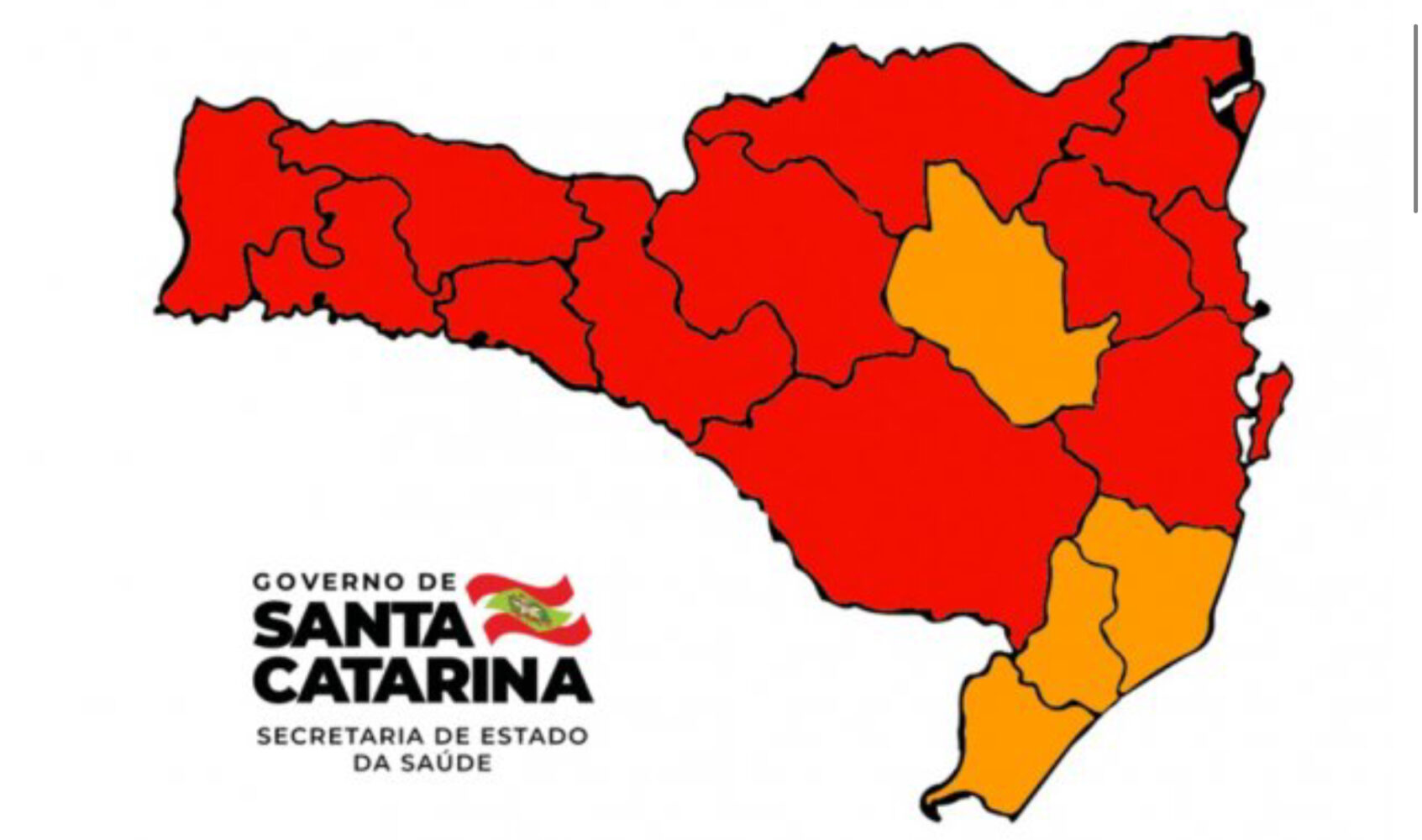 As regiões Carbonífera, Laguna, Extremo Sul e Alto Vale do Itajaí permanecem no nível grave (cor laranja).