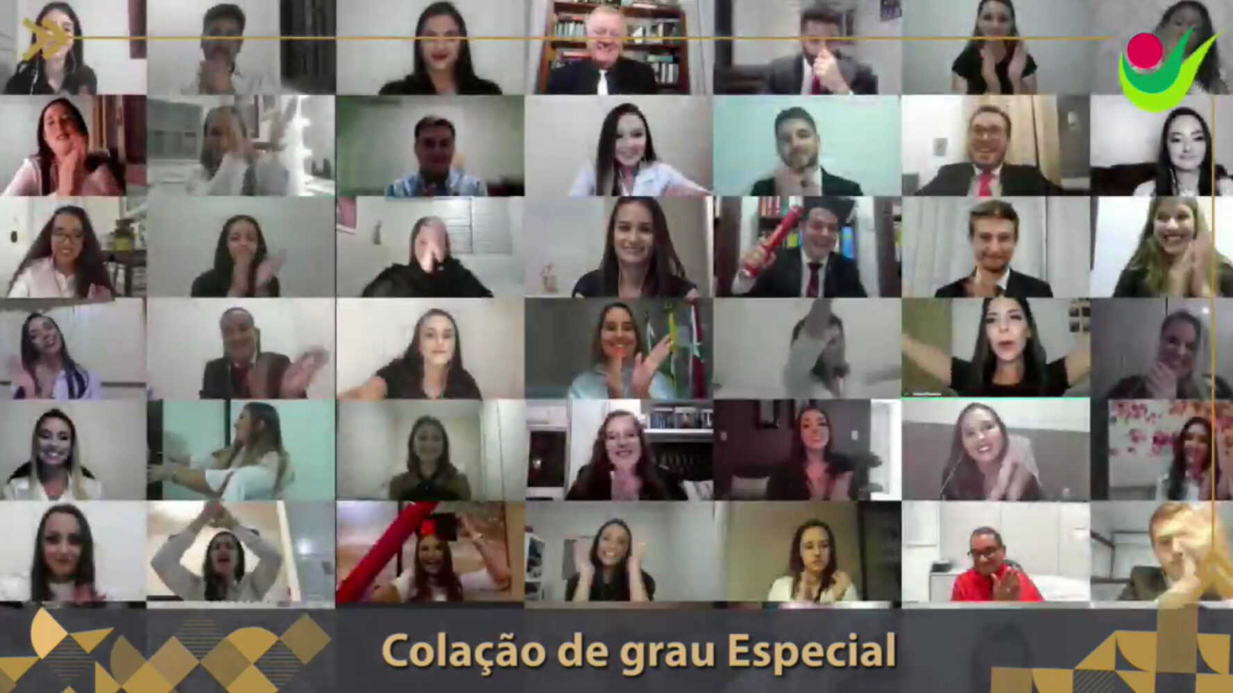 Mesmo realizada de forma virtual em decorrência das medidas de prevenção à Covid-19, a Colação de Grau destas e de todos os formandos da turma não deixou de ser especial. Separados, cada formando pôde acompanhar a cerimônia ao seu gosto, rodeado pelos entes mais queridos.