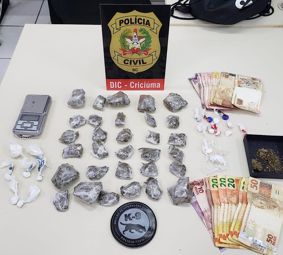 De acordo com as informações do delegado André Milanese, durante a ação, que contou com apoio do Núcleo de Operações com Cães (NOC) da 6ª Delegacia Regional de Polícia, foram apreendidos 265 gramas de maconha, 18 gramas de cocaína, R$ 625,00 em espécie e uma balança de precisão.