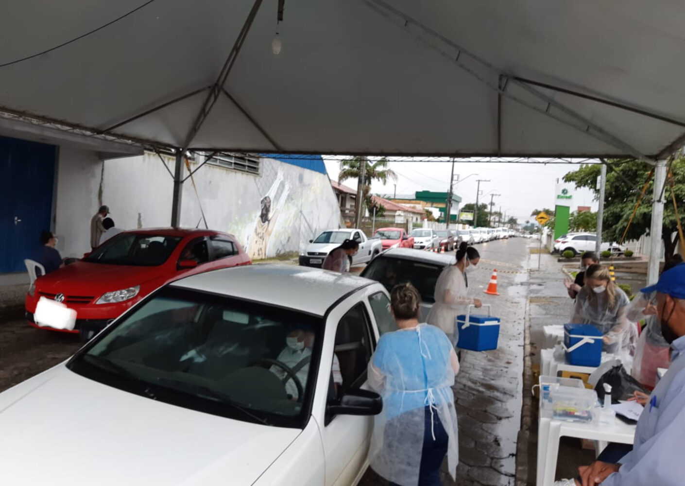 Morro da Fumaça segue ampliando a vacinação contra a Covid-19 e nessa terça-feira, dia 23, nem a chuva que caia na cidade atrapalhou o trabalho dos profissionais de saúde. Seguindo o Plano de Imunização, a Secretaria do Sistema de Saúde, em nova ação em sistema drive-thru, aplicou a primeira dose em 280 idosos de 70 a 72 anos de idade.