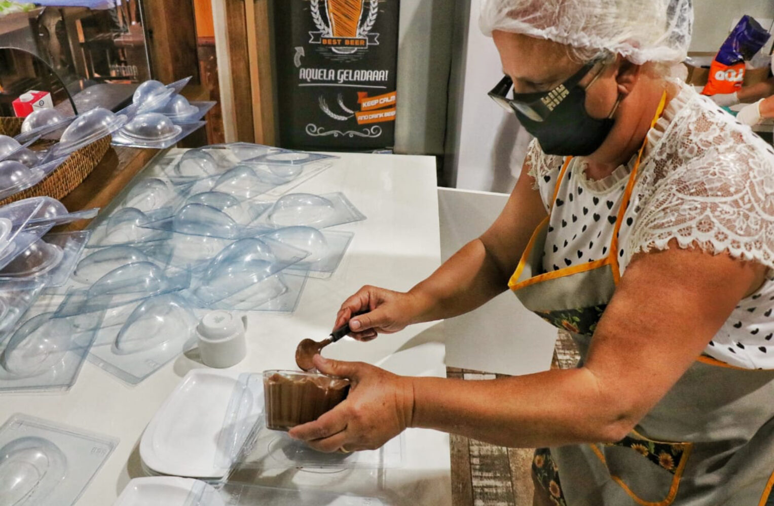 Um grupo de 15 voluntárias se reveza na Casa da Minestra, que é gerenciada pela Associação Feminina de Assistência Veneziana (AFAVE), para a produção de ovos de páscoa. O objetivo é produzir 350 unidades das delícias, que serão distribuídas para os participantes dos grupos da terceira idade do município e alunos da Associação de Pais e Amigos dos Excepcionais (APAE), de Nova Veneza.