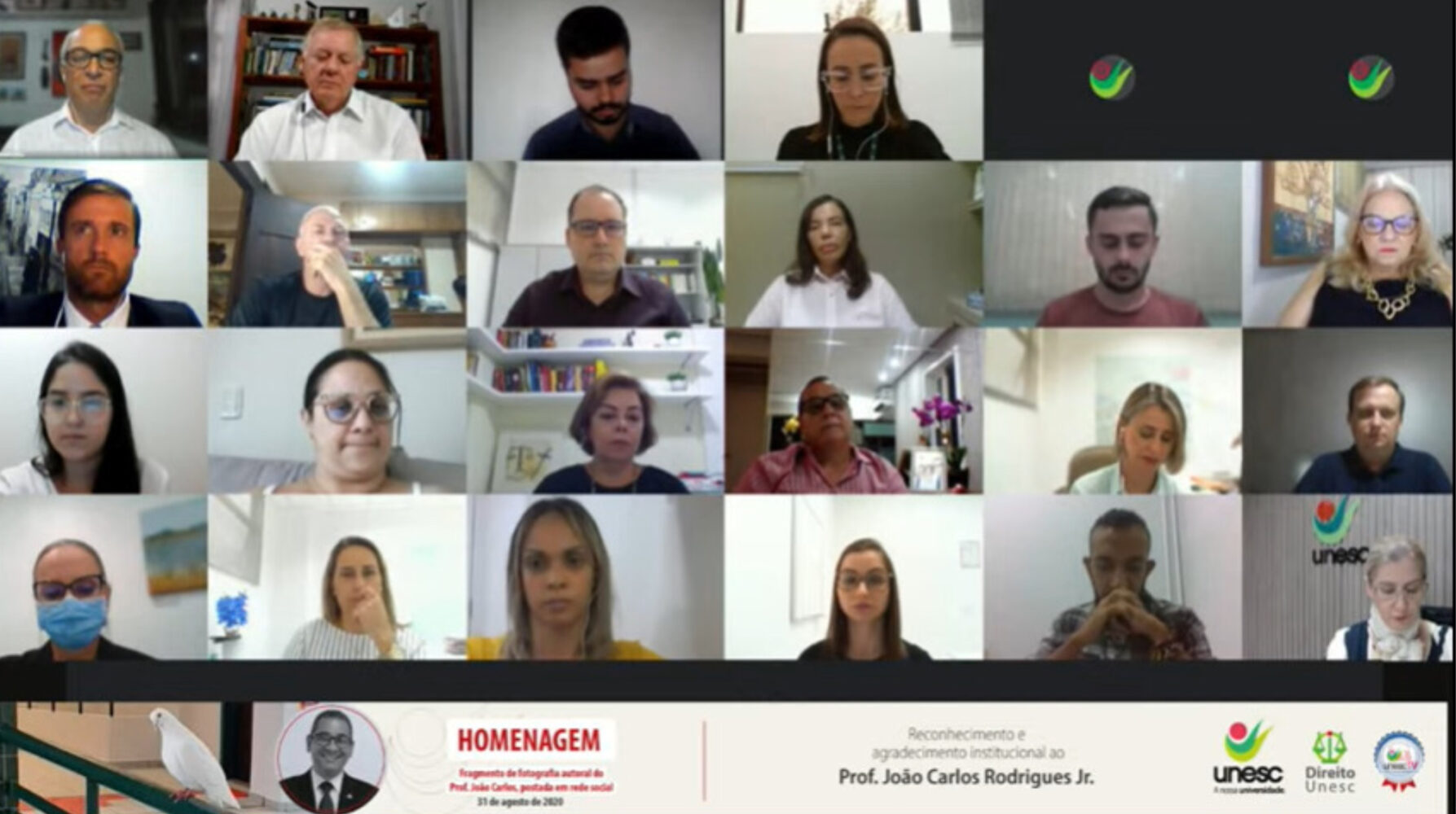 Toda a cerimônia, assim como o vídeo produzido pela Unesc em homenagem à João e o vídeo compartilhado pelo professor João Batanolli, coordenador do projeto Âmago, em seu momento de reflexão, pode ser assistida no YouTube no canal da Unesc TV: