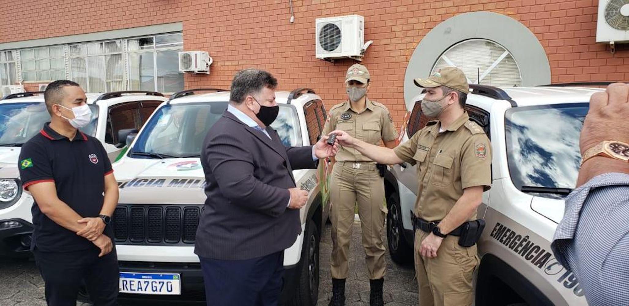 Estiveram presentes também o Chefe do Estado Maior da 6ª Região de Polícia Militar (RPM), tenente-coronel Cristian Dimitri Andrade, neste ato representando o Comandante da 6ª RPM, Coronel Evandro de Andrade Fraga, demais comandantes e policiais da região para o recebimento de viaturas e equipamentos, que irão fortalecer o serviço operacional e contribuir sobremaneira para a atividade de segurança pública dos municípios da AMREC e AMESC.