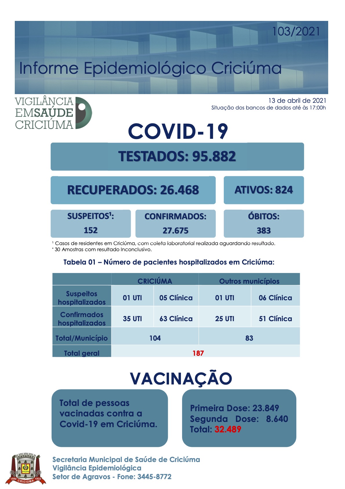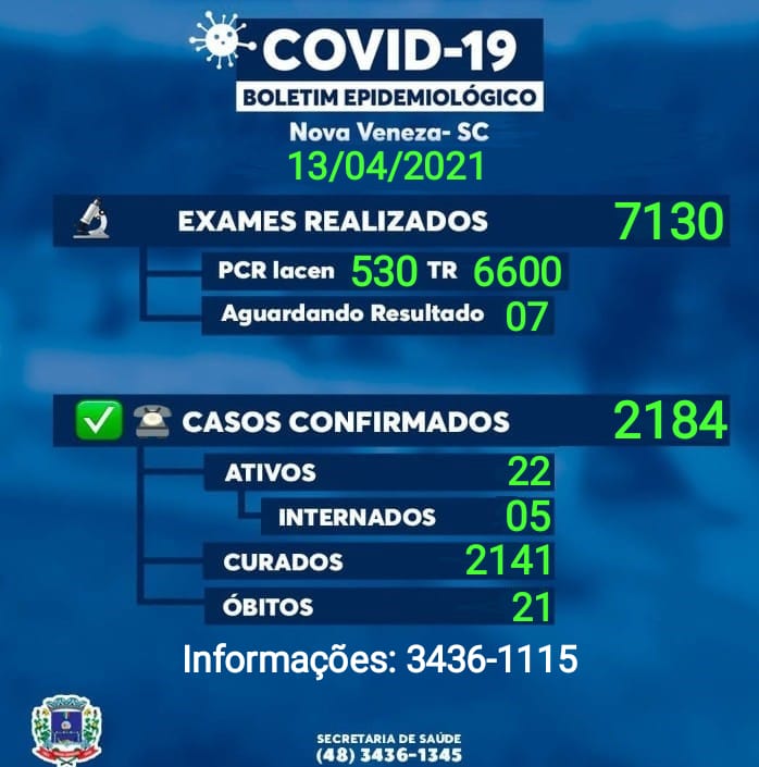Dados não recebidos até a publicação desta matéria, às 21h50 dessa terça-feira, dia 13 de abril de 2021.