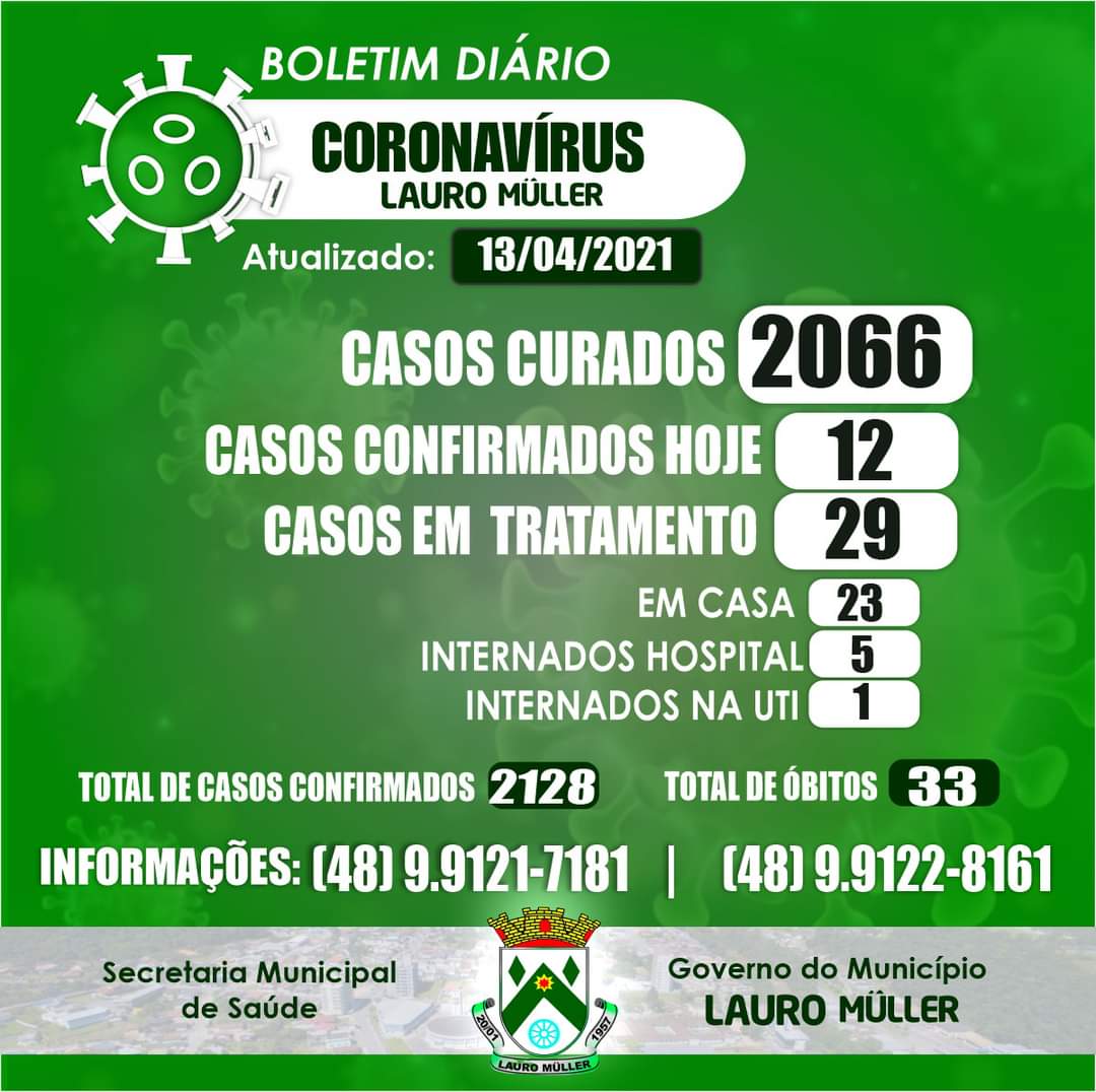 Confira os números de casos confirmados em cada um dos 12 municípios até essa terça-feira, dia 13 de abril de 2021.