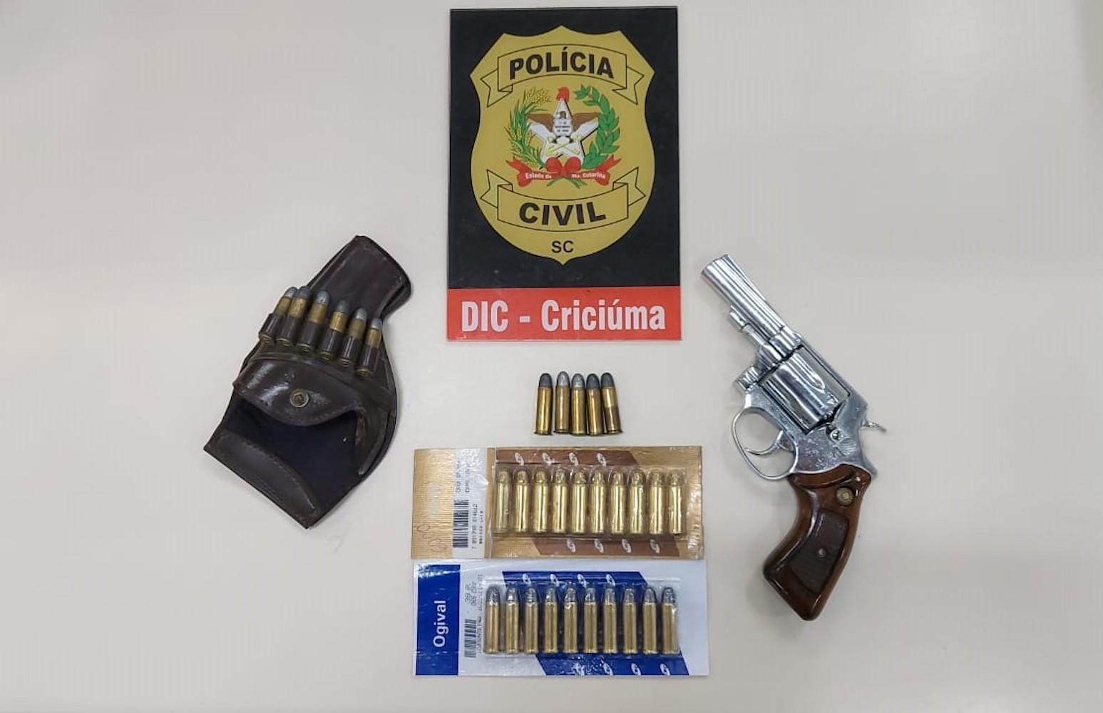 A Polícia Civil, através da Divisão de Investigação Criminal (DIC) de Criciúma, apreendeu uma arma de fogo e munições, na tarde dessa quinta-feira (6), no bairro São Simão, em Criciúma.