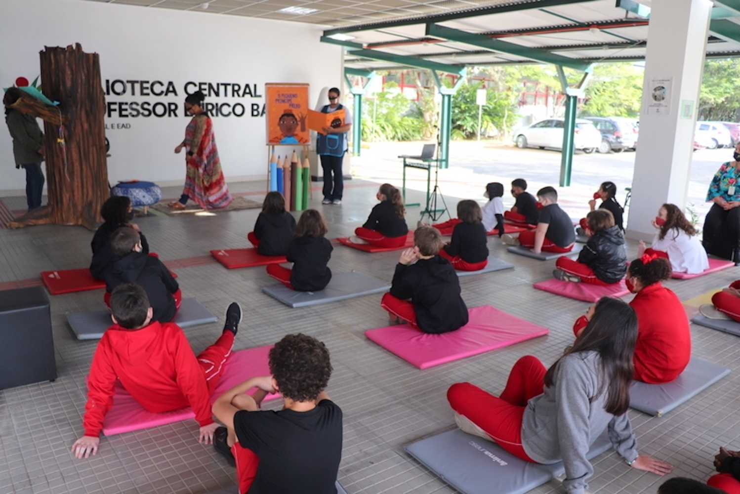 Os alunos do Colégio Unesc foram envolvidos, na tarde desta sexta-feira (14/5), em uma história pra lá de importante. Empatia, afeto, orgulho e ancestralidade estiveram entre os aprendizados, oportunizados pela contação da história O Pequeno Príncipe Preto. A ação, realizada no hall da Biblioteca Central Eurico Back, da Unesc, recebeu os pequenos para uma viagem na imaginação e, mais que isso, para aprendizados lúdicos sobre a vida real.