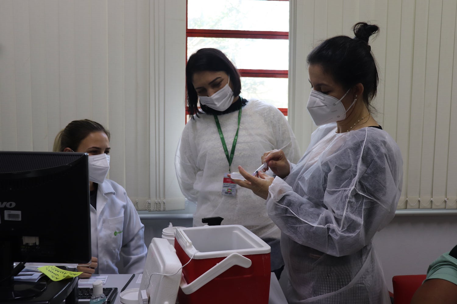 De acordo com Zoraide, esta é mais uma grande parceria entre a Unesc e o Município. “A Universidade realiza muitos trabalhos junto da prefeitura em todos os campos de atuação em que está inserida. Agora, estamos contribuindo sendo mais um local de vacinação. Com as doses aplicadas hoje, junto de uma profissional da Vigilância Epidemiológica, recebemos todo o conhecimento sobre os sistemas de transparência, como o Portal Minha Vacina, e em relação à diluição e administração da vacina”, explica Zoraide.