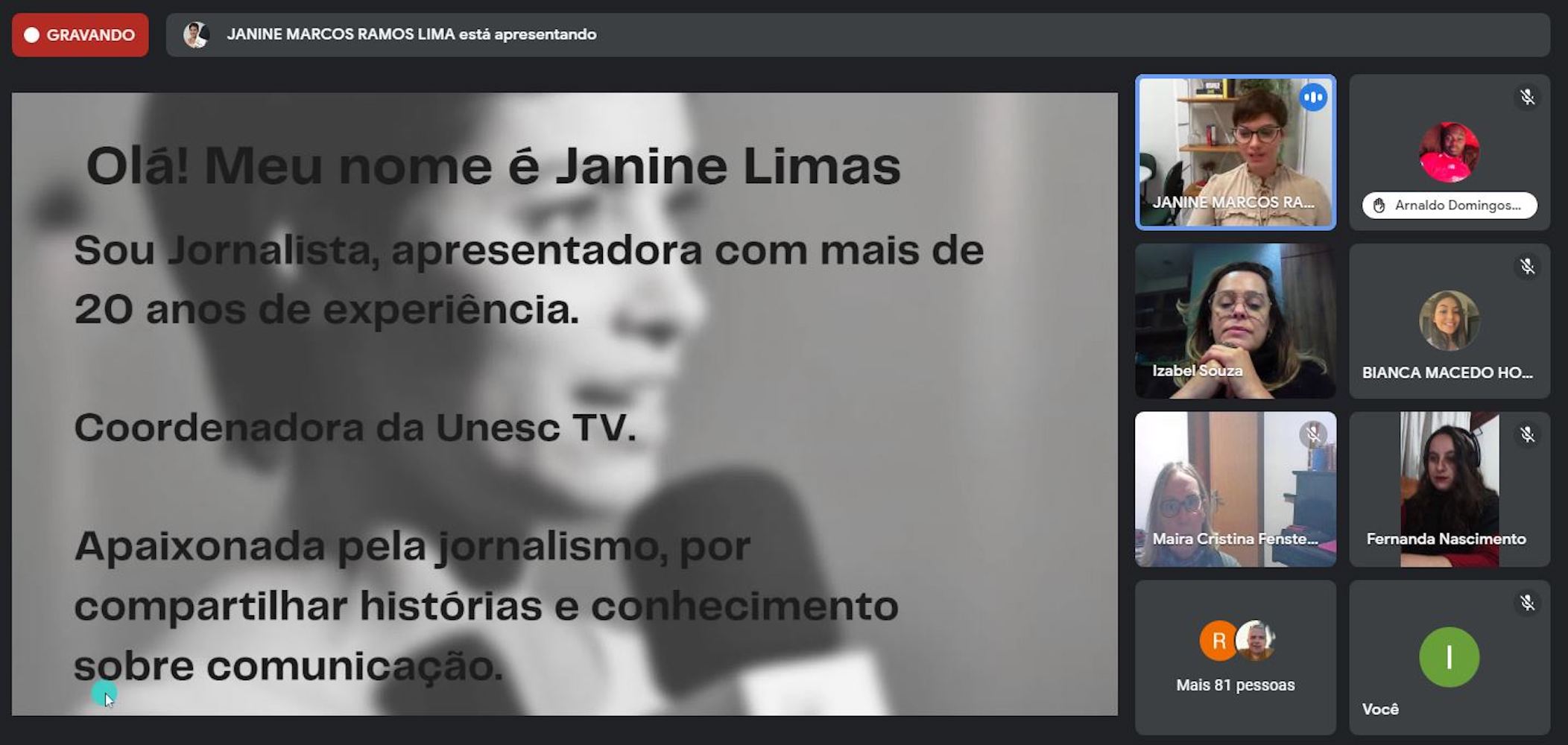 O bate-papo promovido pela jornalista tratou sobre diferentes formas de transmitir informações, desde uma palestra diante de um auditório, em uma reunião entre colegas ou, como a atual realidade impõe, para um grande público por meio da tela do computador. Entre as dicas apresentadas pela convidada esteve a preparação detalhada do conteúdo a ser compartilhado. “Eu confio na preparação de um roteiro, mesmo que seja para uma reunião simples de trabalho, já que desta forma é possível seguir uma linha de raciocínio com segurança. Além disso, vale a máxima de treinar. Ensaiar com familiares, em frente ao espelho, testar a entonação de voz e, assim, perceber se está conseguindo transmitir a mensagem da melhor forma”, comentou, acrescentando que o estudo do tema é o que dá segurança à fala.