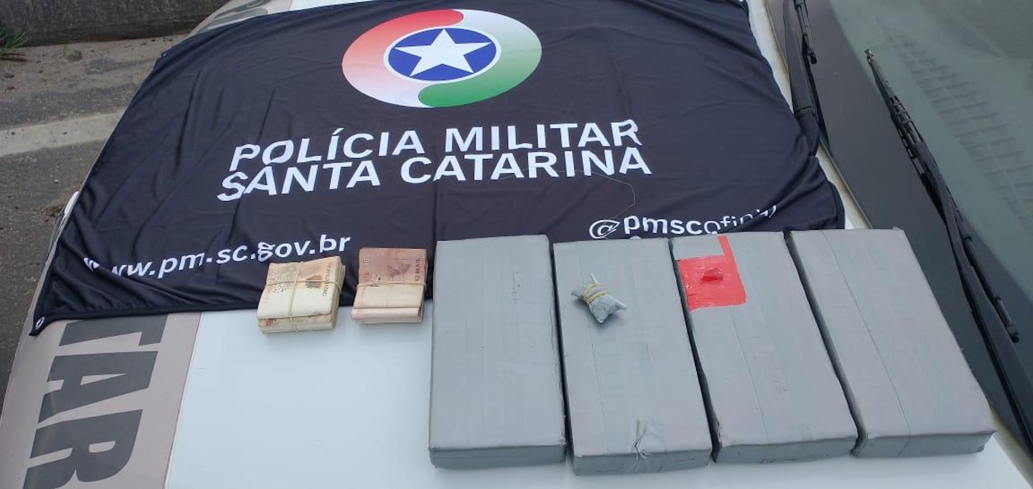 A Polícia Militar apreendeu quatro quilos de cocaína e mais de R$ 16 mil, na tarde dessa quarta-feira (30).