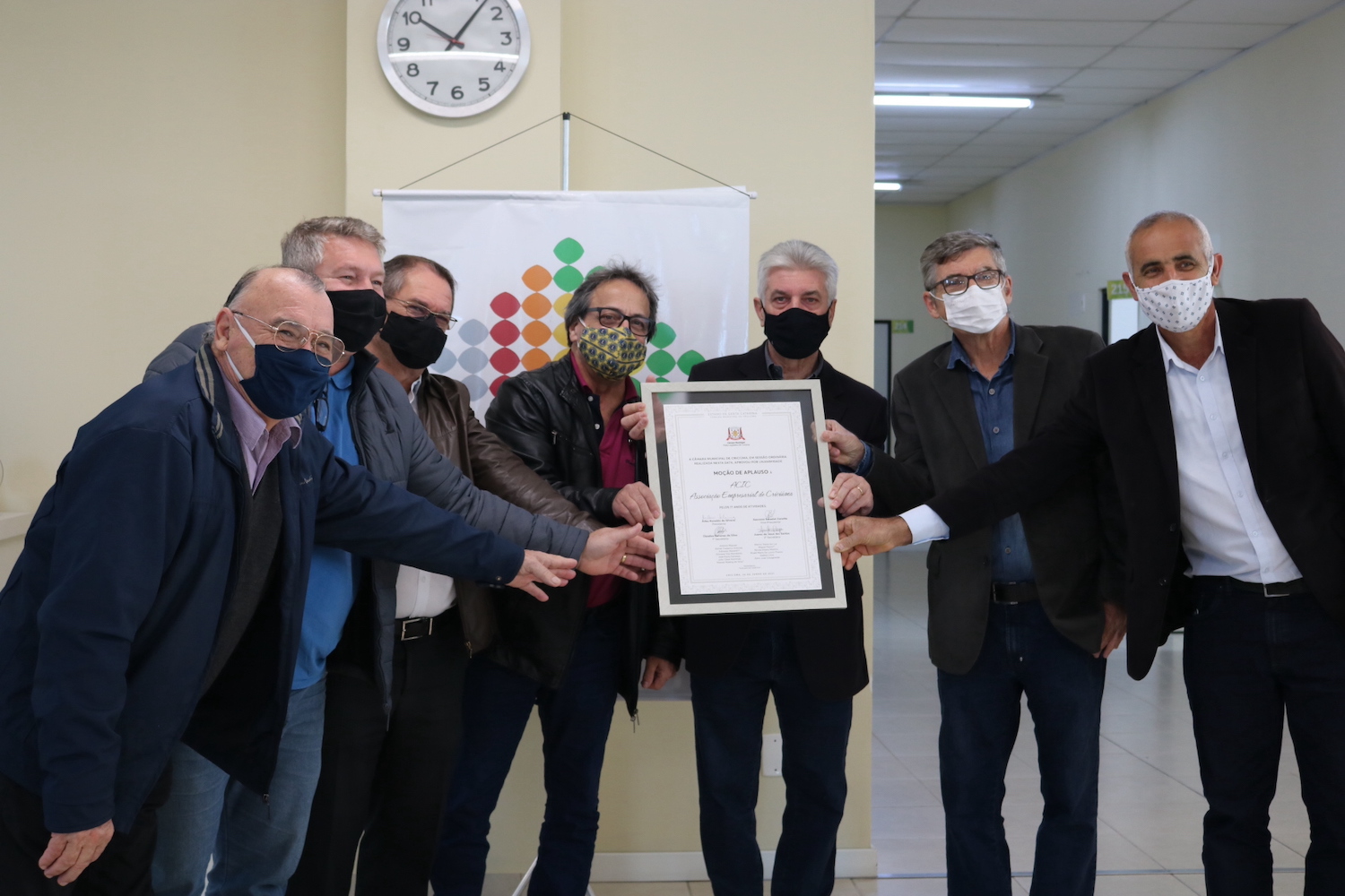 A Associação Empresarial de Criciúma (Acic) recebeu na manhã desta quarta-feira, 30, o reconhecimento da Câmara de Vereadores de Criciúma pelos seus 77 anos de fundação com a entrega oficial de uma placa. A Moção de Aplauso para a associação foi aprovada, por unanimidade, na Sessão Ordinária do último dia 22 de junho. De autoria do vereador Manoel Rozeng da Silva, a moção foi entregue ao presidente da Acic, Moacir Dagostin, na sede da entidade, com a presença de todos os colaboradores.