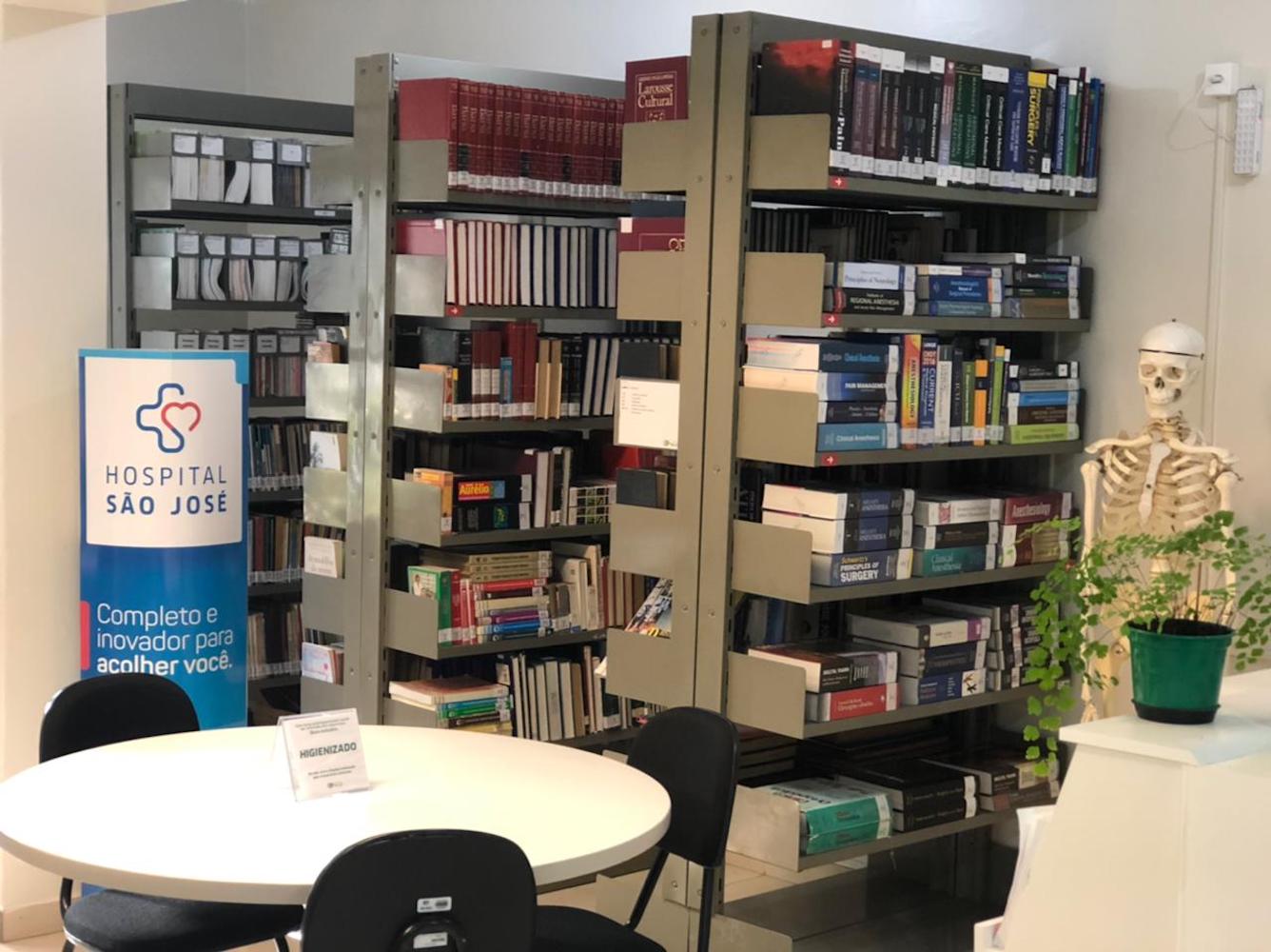 Atualmente, a biblioteca do HSJosé conta com um acervo de 2.734 livros catalogados. “Além dos livros e revistas disponibilizados para pesquisas no local e para empréstimos, há também computadores conectados à internet e ao sistema Tasy (software utilizado pelo HSJosé para o acesso às informações), onde médicos residentes, funcionários e estagiários podem acessar. Existe também os serviços de cópias e impressões de trabalhos acadêmicos”, garante a coordenadora.
